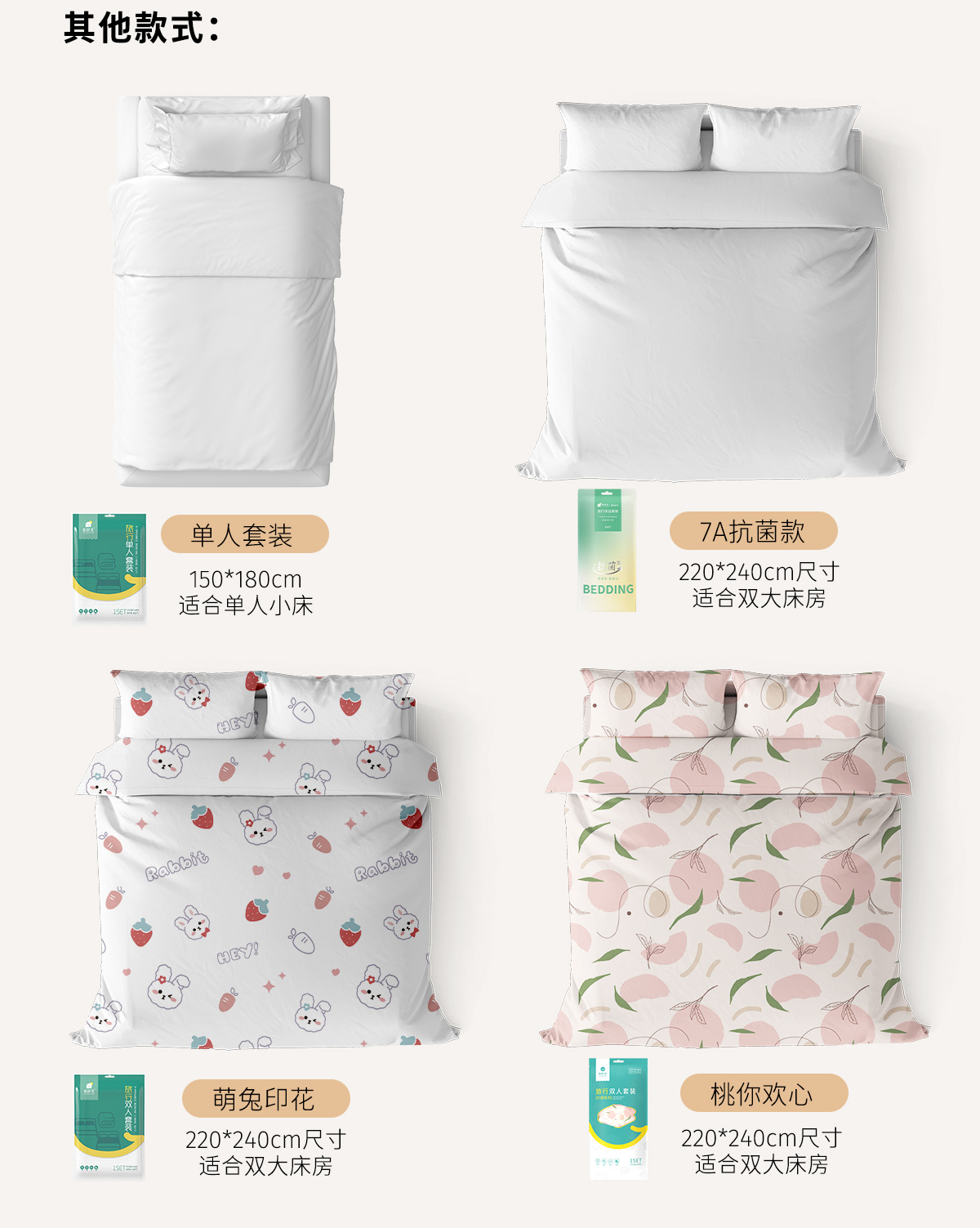 一次性加厚灭菌旅行出差酒店床单枕套被套三件套四件套真空包装