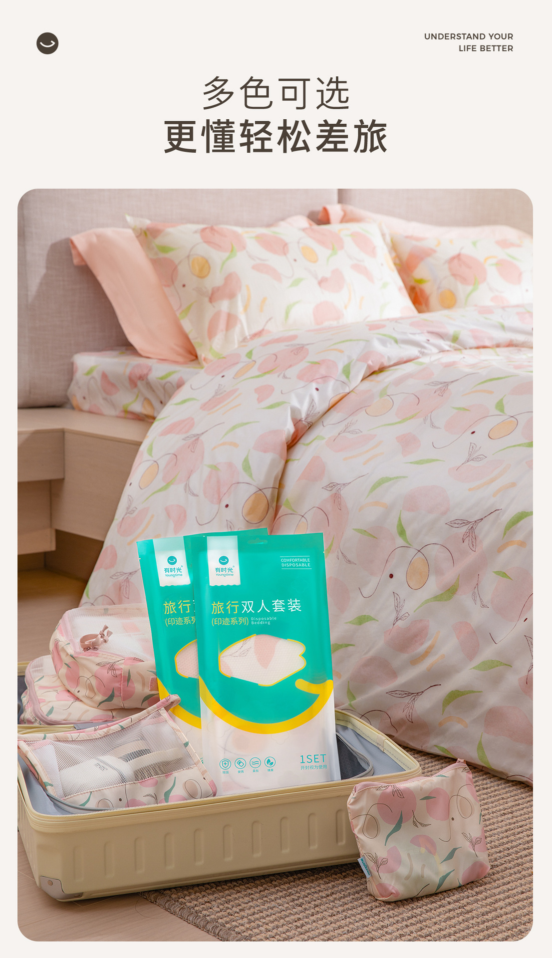 有时光一次性床单四件套棉感被套枕套酒店旅游民宿居家隔脏用品