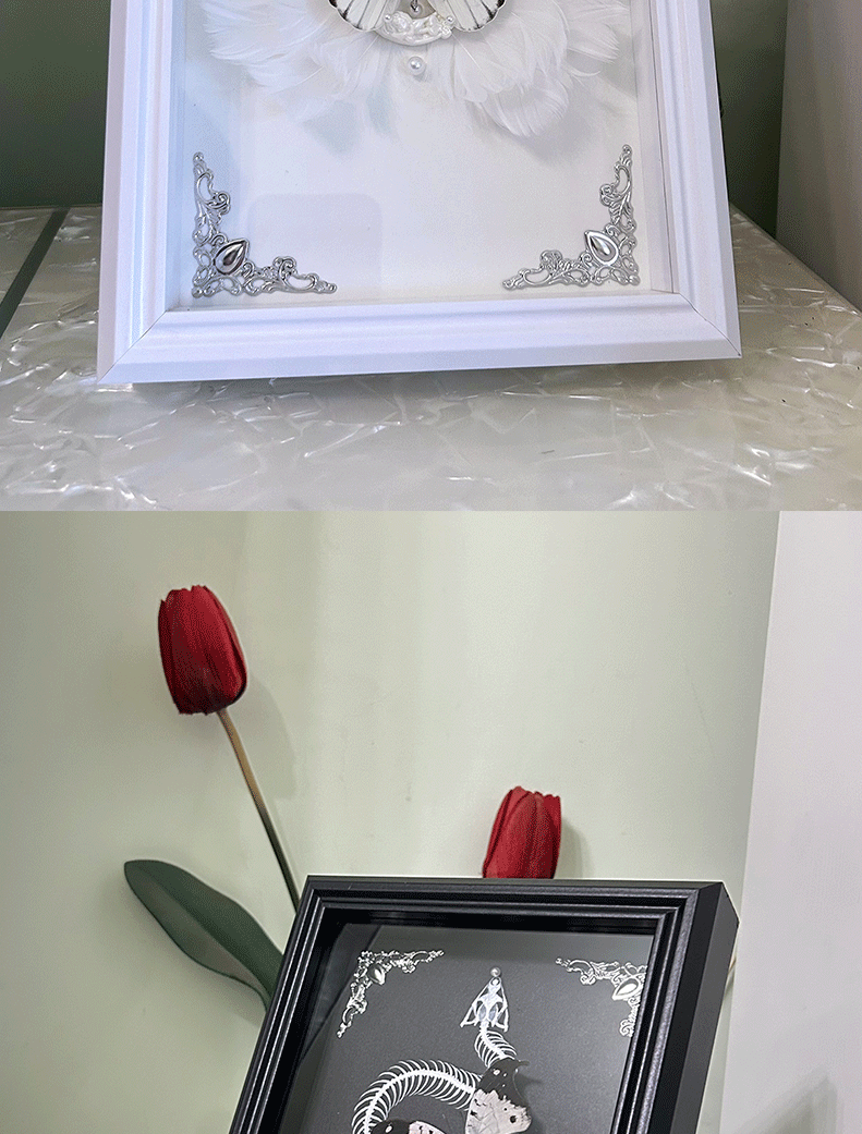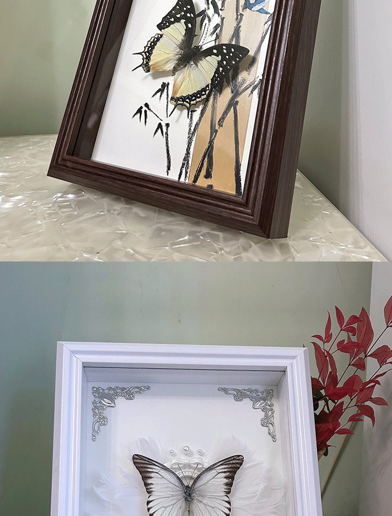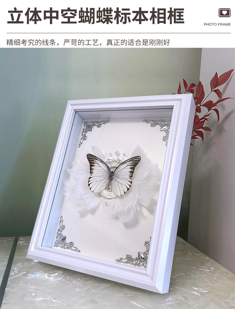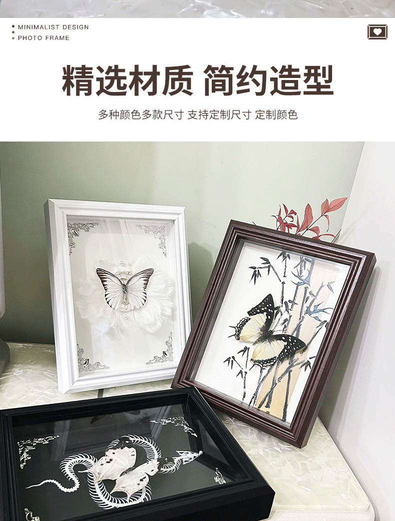 蝴蝶标本相框摆台吧唧徽章中空玻璃展示框diy干花欧式实木制相框