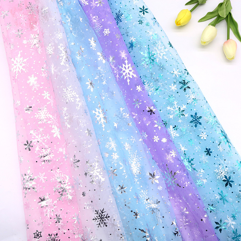 箔押し銀雪花網糸生地雪氷奇縁糸愛莎プリンセススカートマントマント演出服生地