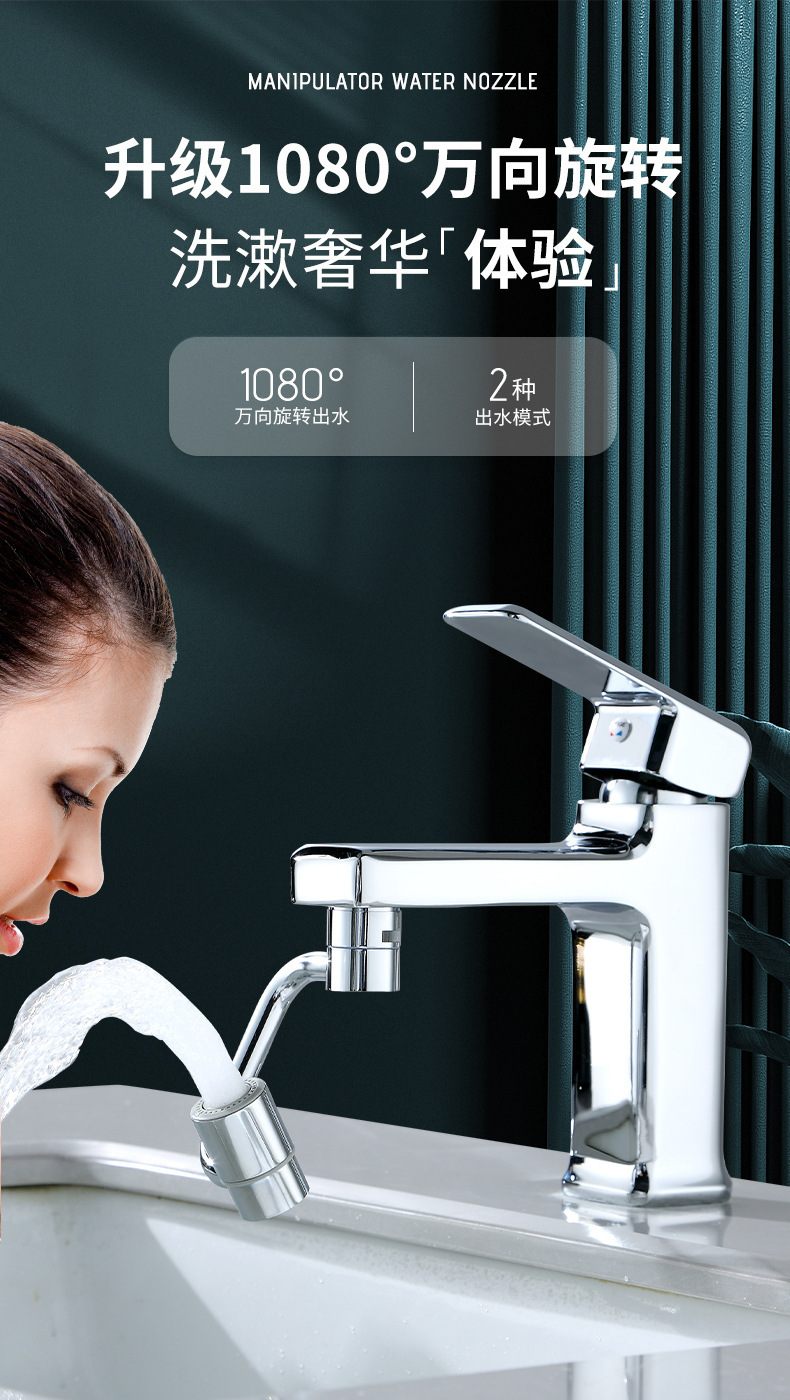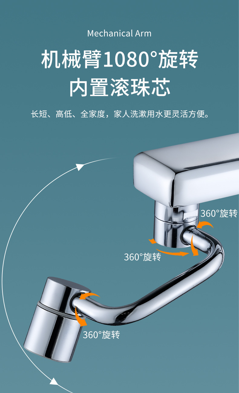 1080 ° 銅合金製万能メカニカルアーム水栓、キッチンとバスルーム兼用延長エクステンダー、防滴水グッズ