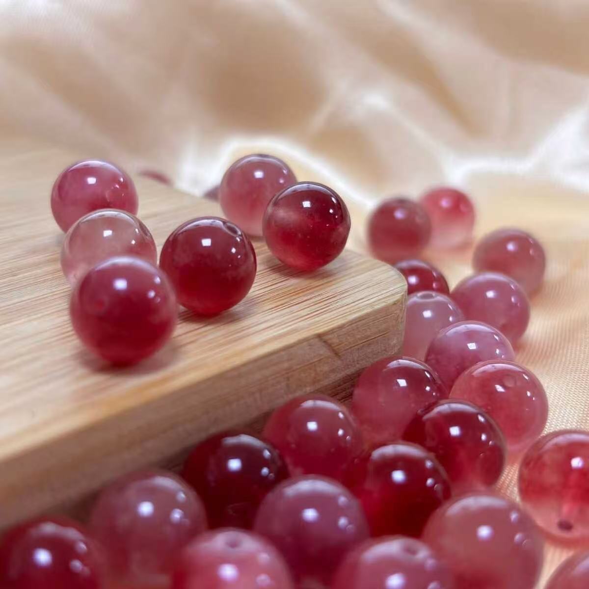 冰种草莓晶飘花散珠玉石桃花玉散珠饰品串珠配件文玩diy手链批发