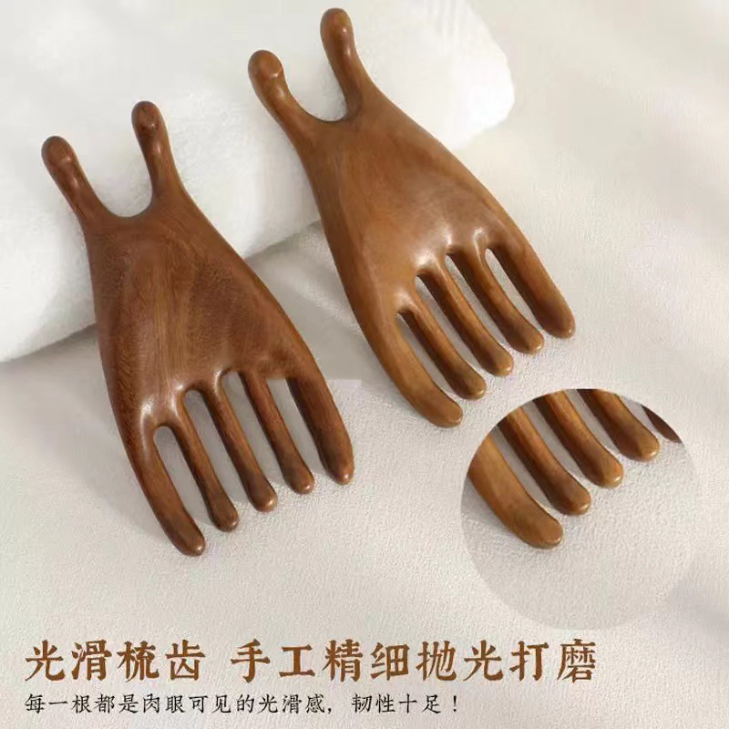 多機能大歯櫛の幅が太くて、経絡マッサージのパーマをかけます。檀木櫛の頭の頭皮マッサージです。