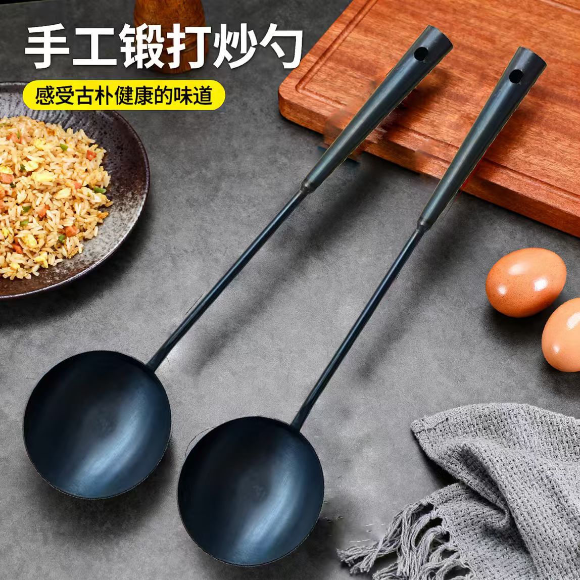 铁勺铁铲工厂批发手工锻打老式长柄勺铲传统初始家用炒菜勺铲勺子