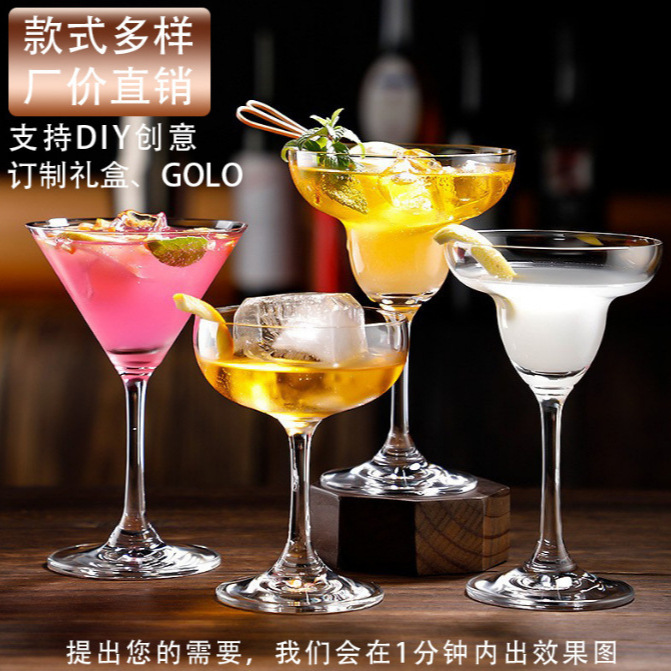 クリスタル高脚カクテルカップ浅皿シャンパンカップガラスv形マティーニ洋酒シャンパンカップクロスボーダー