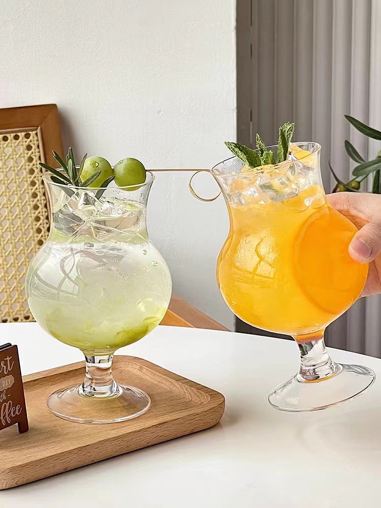 高脚グラス夏家庭用女子学生高颜値透明ジュースカクテルカップ飲料気泡果物カップ