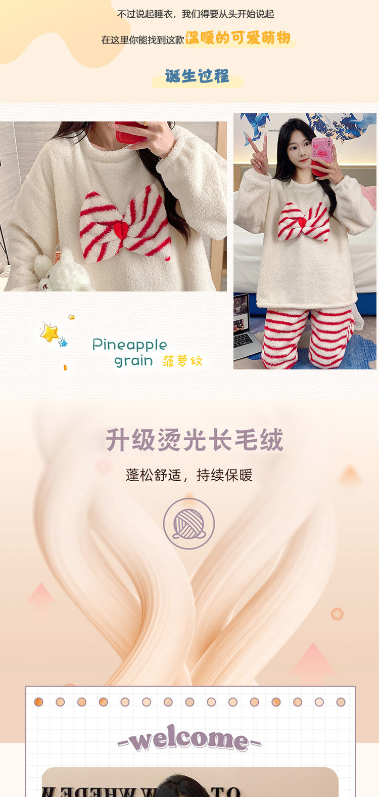 ベルベットのパジャマの女性は秋冬にベルベットを厚くして甘いカーディガンのフランネルの新しい家庭服を生放送した