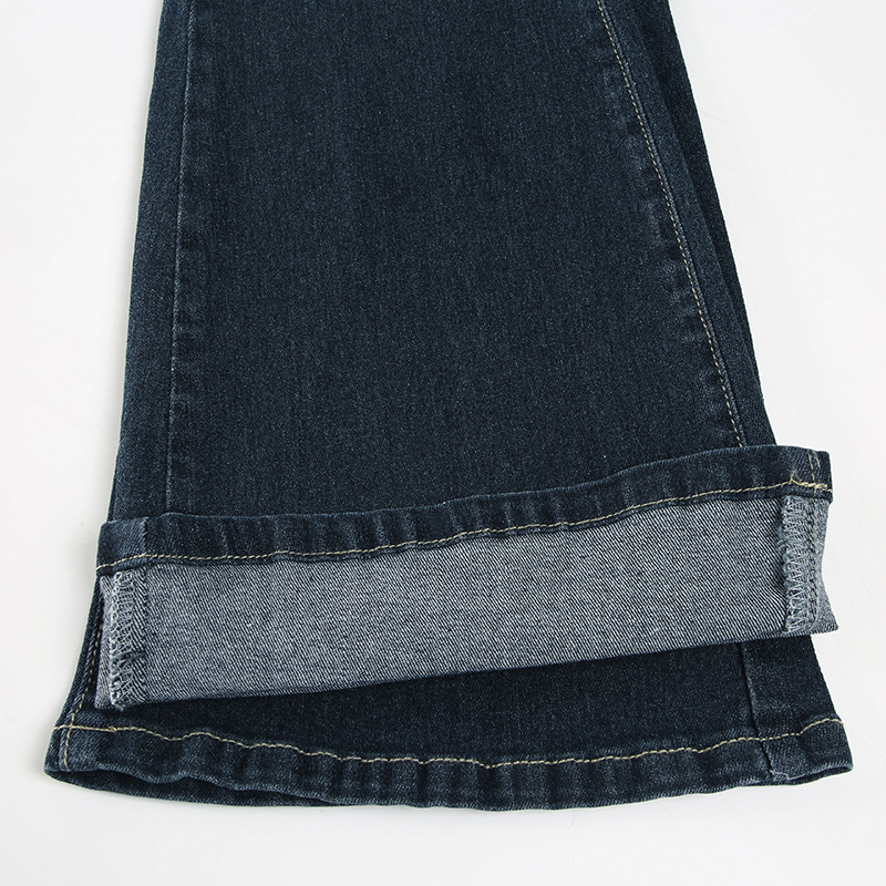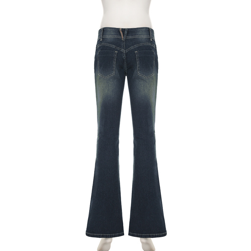 美式千禧复古风洗水做旧口袋修身显瘦直筒喇叭裤街头百搭牛仔长裤