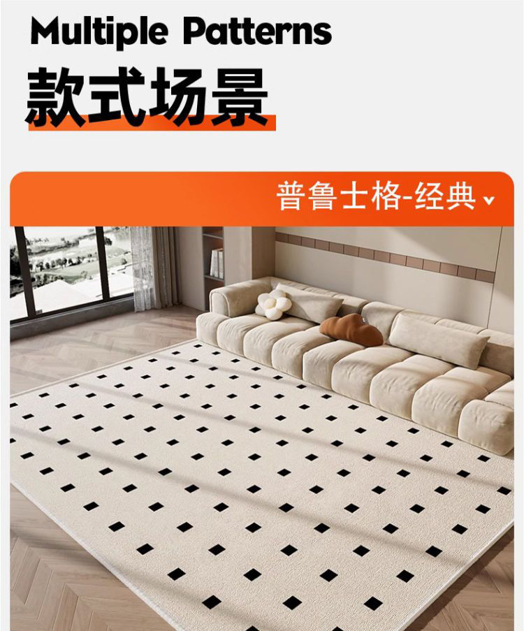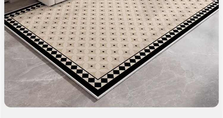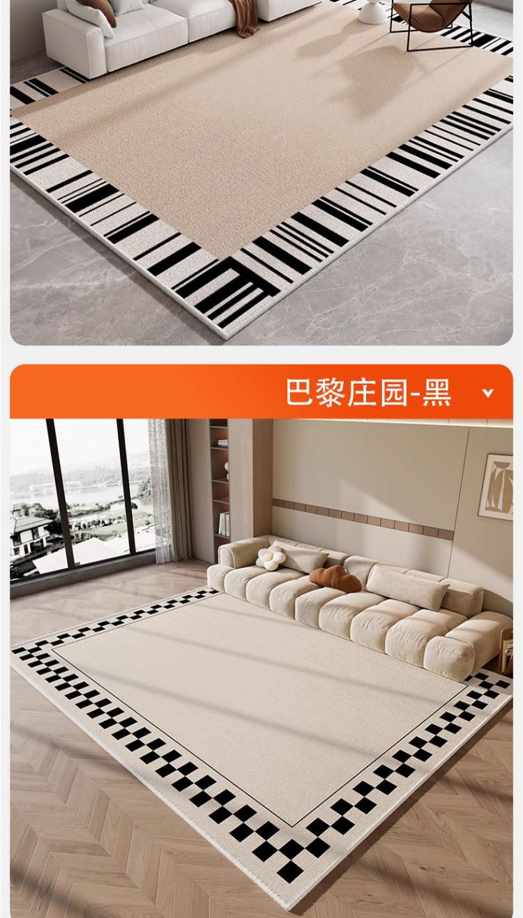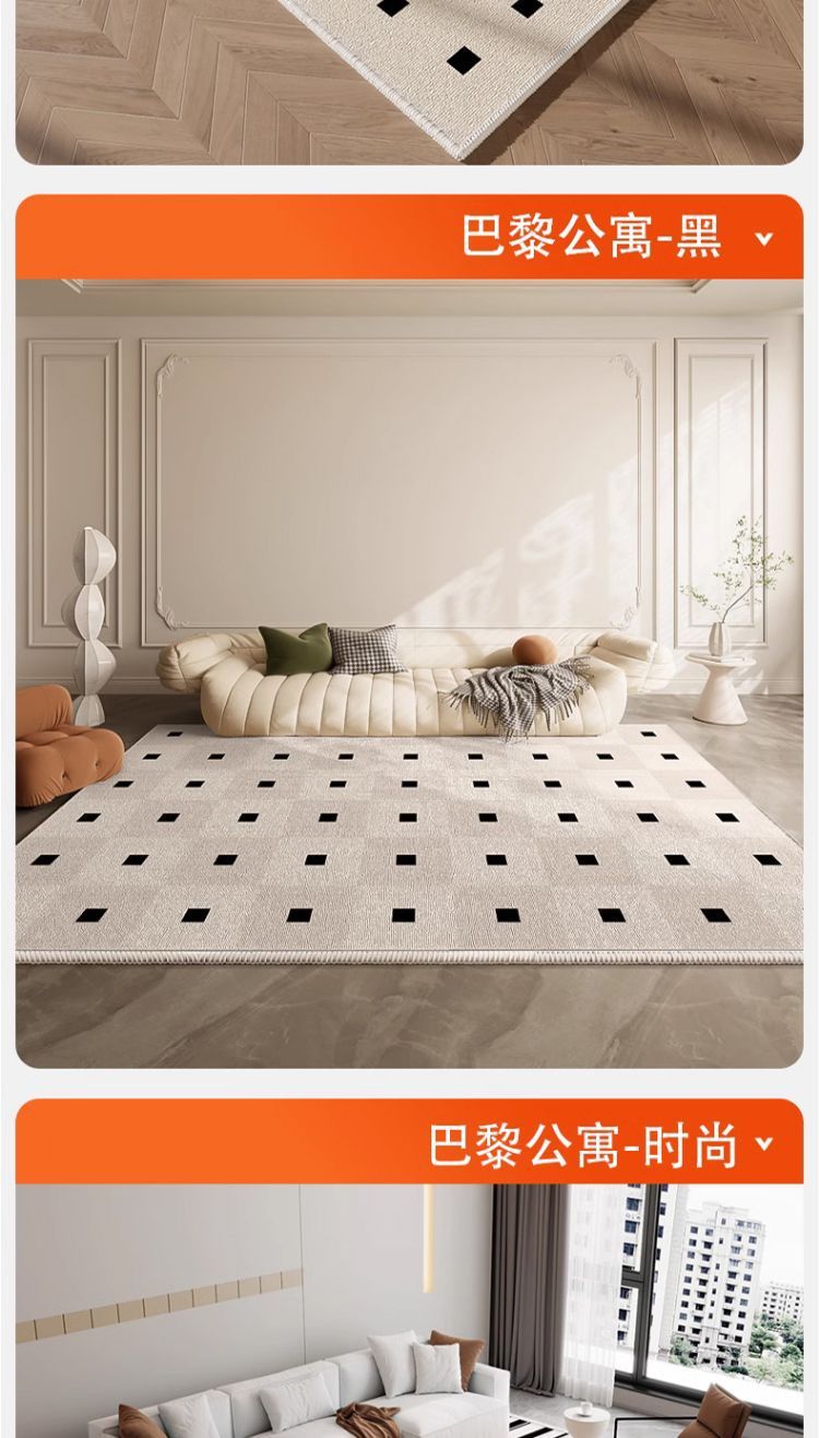 轻奢简约客厅地毯加厚水晶绒地垫民宿黑白格沙发茶几毯卧室床边毯