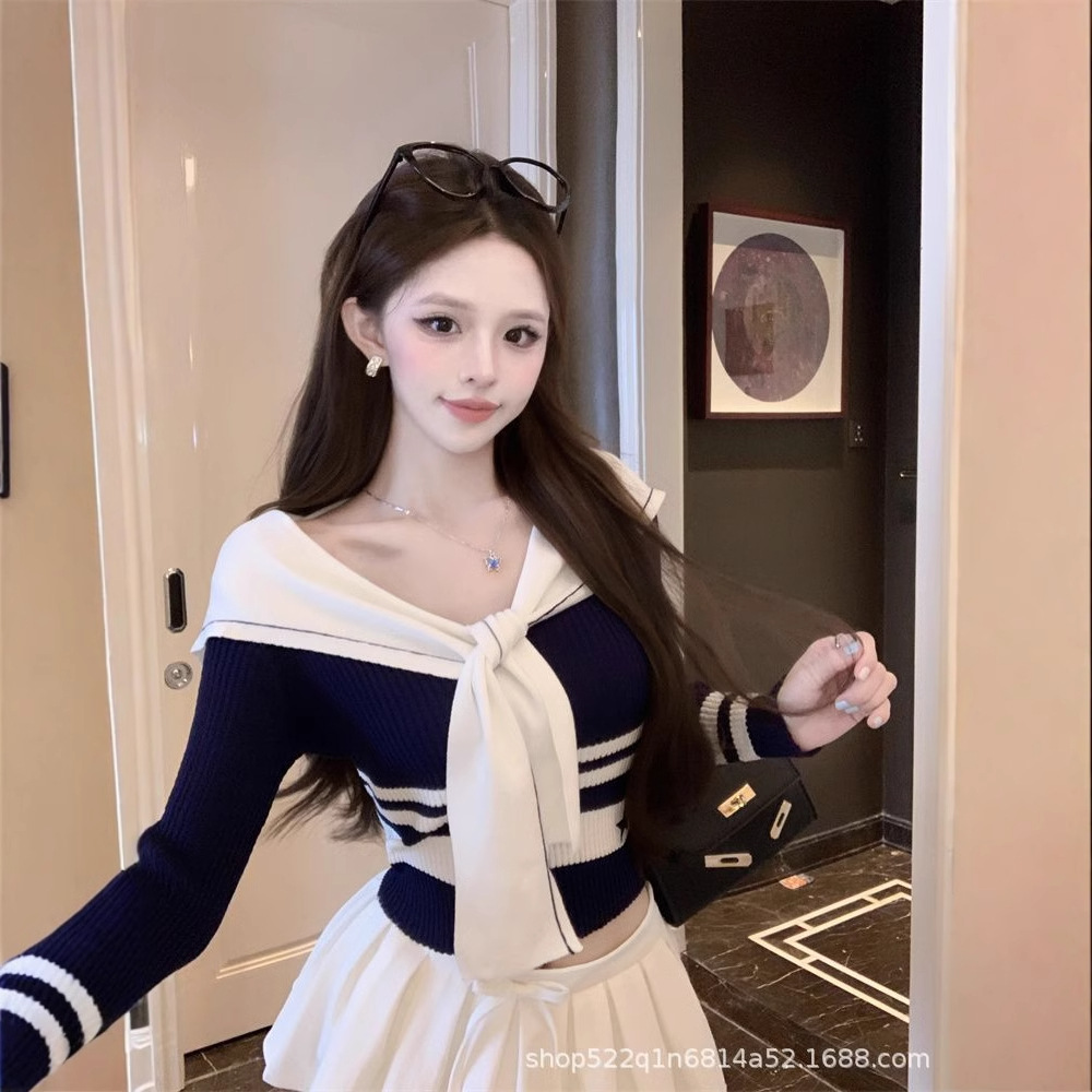 海軍の襟は色にぶつかって身を修めてやせているニットの服の春と秋の新型の学院の風の洋風の減齢の上着の卸売りを現します。