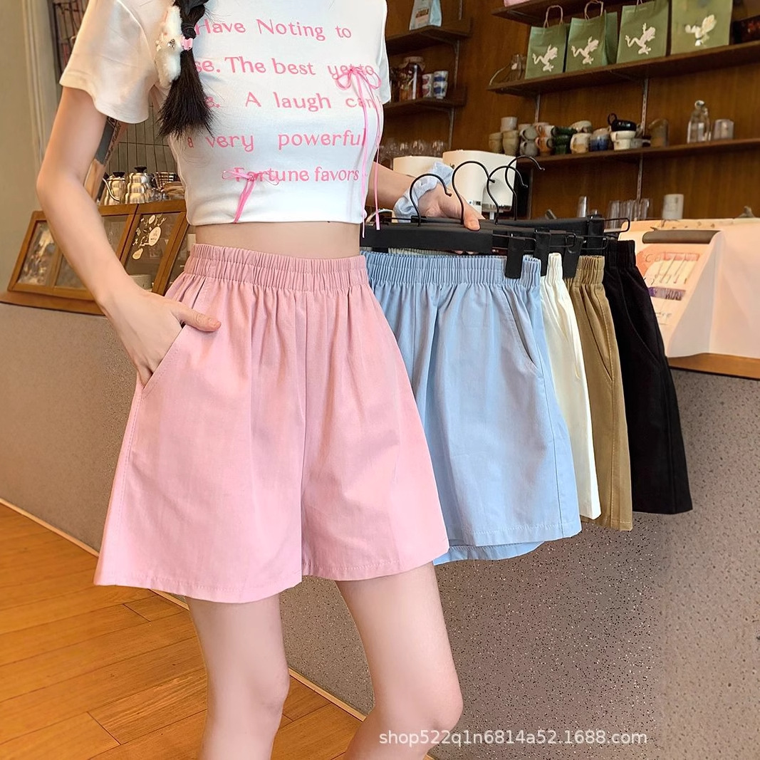 水洗い綿のレトロなハイウエストのカジュアルパンツ
