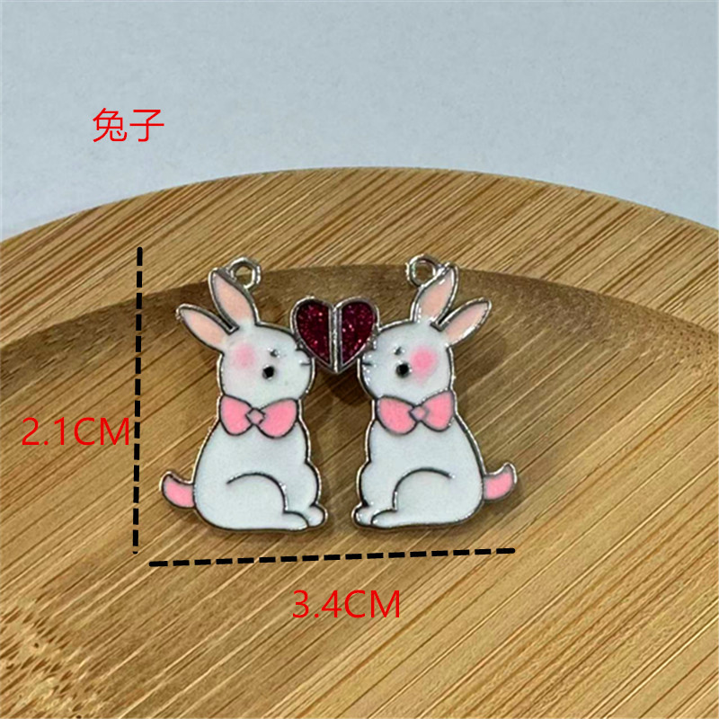 10个/包新款卡通兔子小熊吊坠diy可爱动物手链项链钥匙扣饰品配件