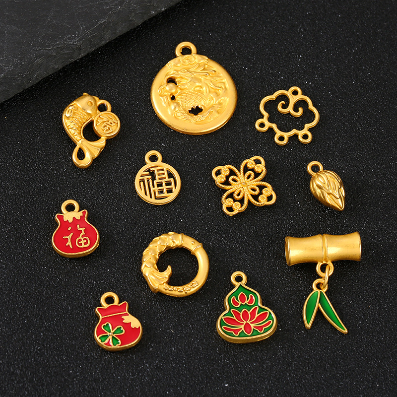 国風抜きひょうたん長命鎖亜鉛合金部品DIYブレスレット耳飾りペンダント古風ヘアピン装飾材料