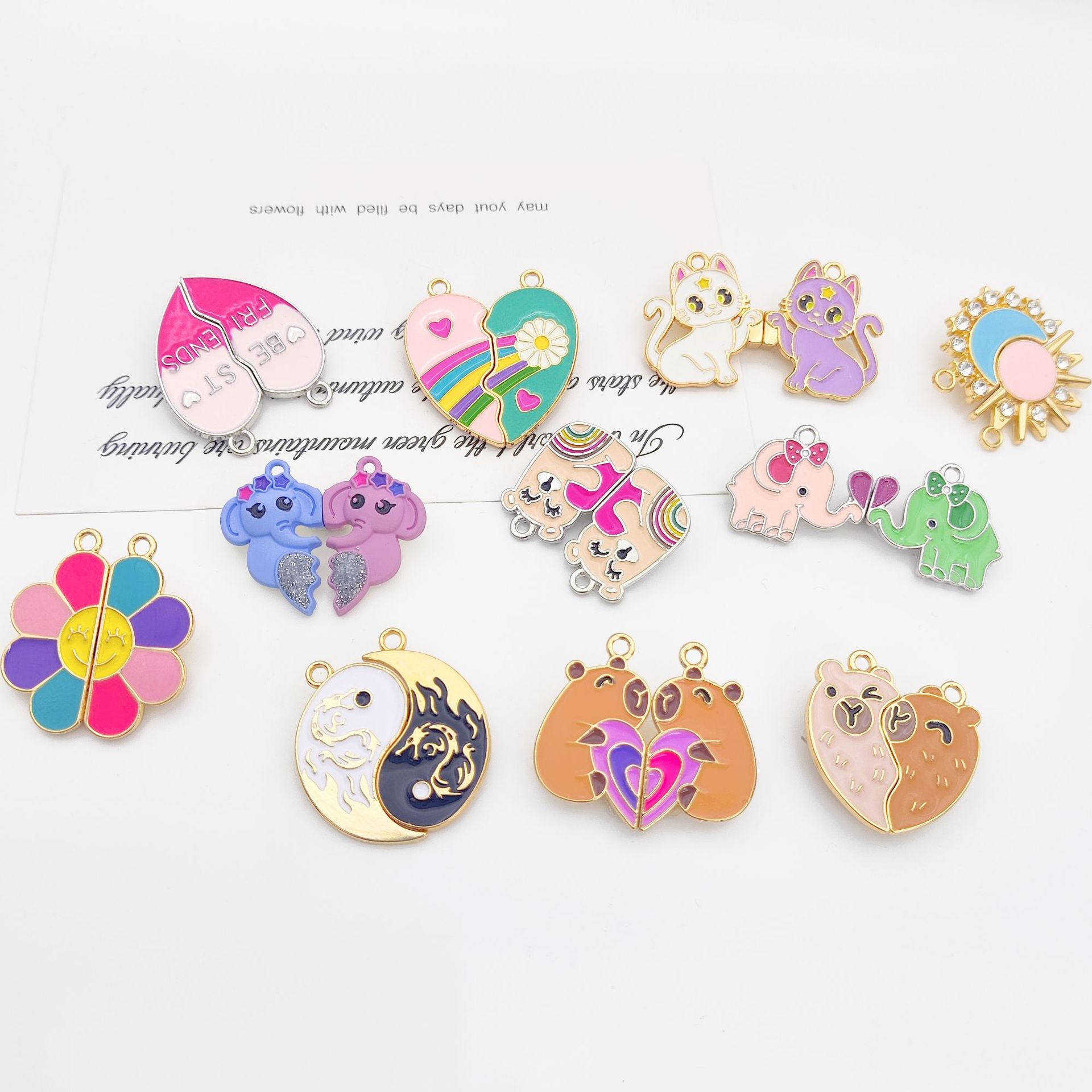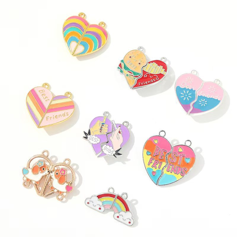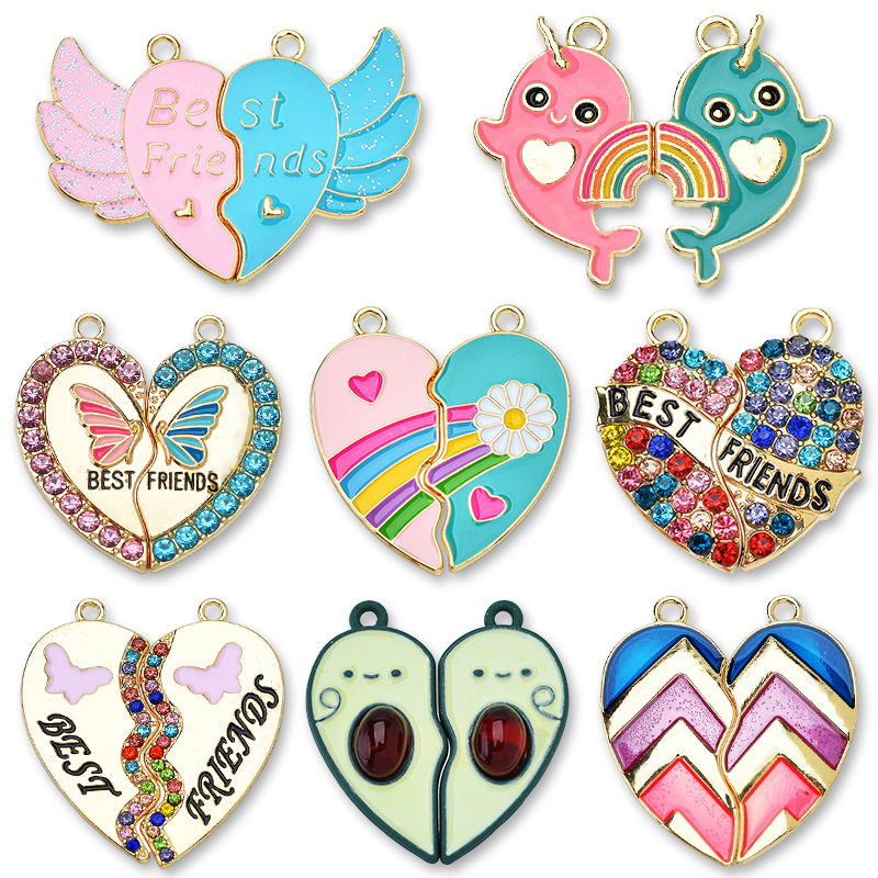 速卖通跨境爱心拼接好朋友儿童饰品配件 闺蜜彩色磁吸心形吊坠