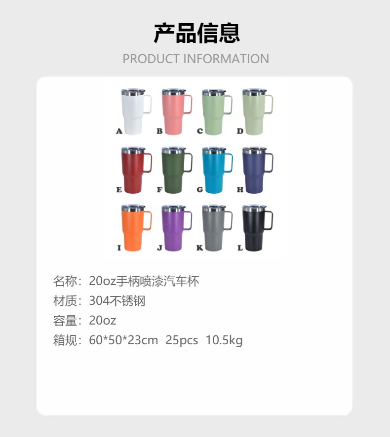 クロスボーダー新型20オンスハンドル自動車カップステンレススプレー真空氷覇カップ車載保温保冷ビールカップ
