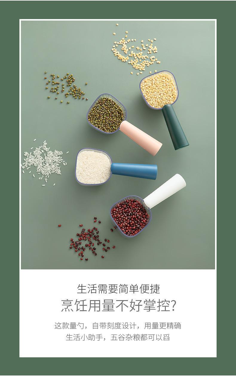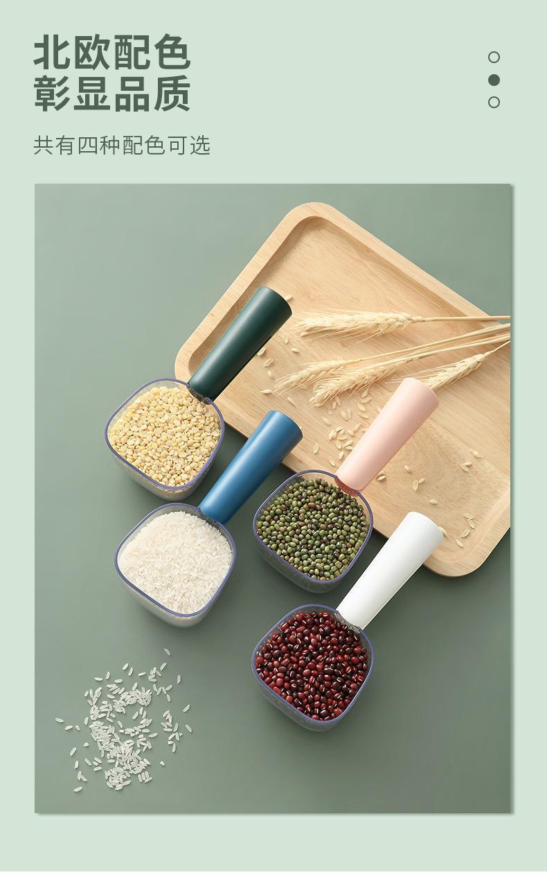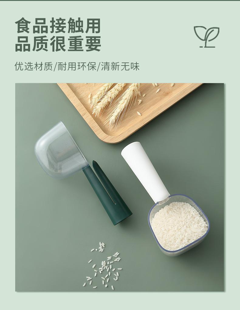 家用多功能舀米勺带封口夹厨房五谷杂粮勺子计量挖面勺宠物猫粮勺