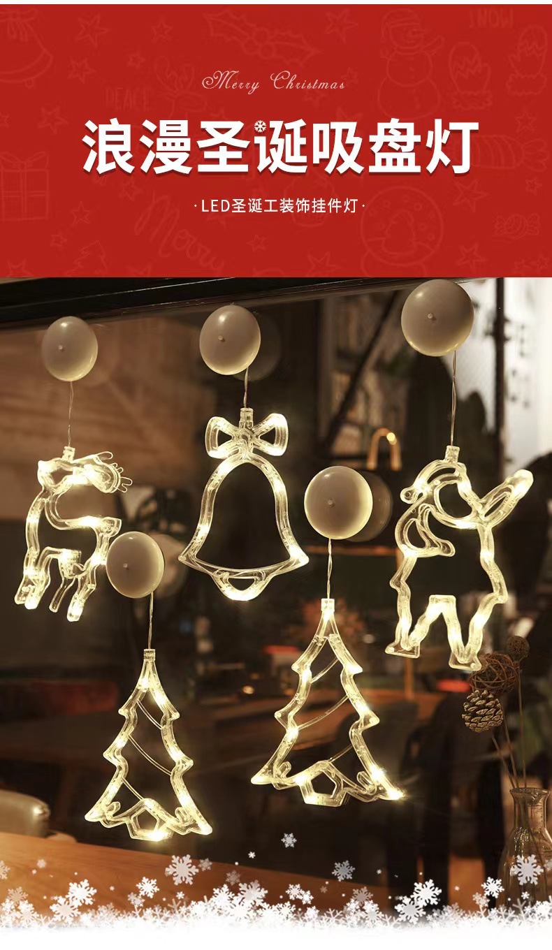 クロスボーダーLEDクリスマス吸盤灯玩具サンタクロース雪だるまヘラジカ形ショーウインドー祝日装飾品卸売り