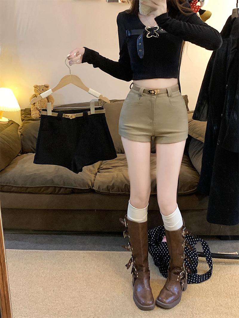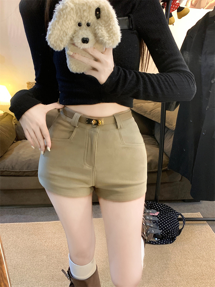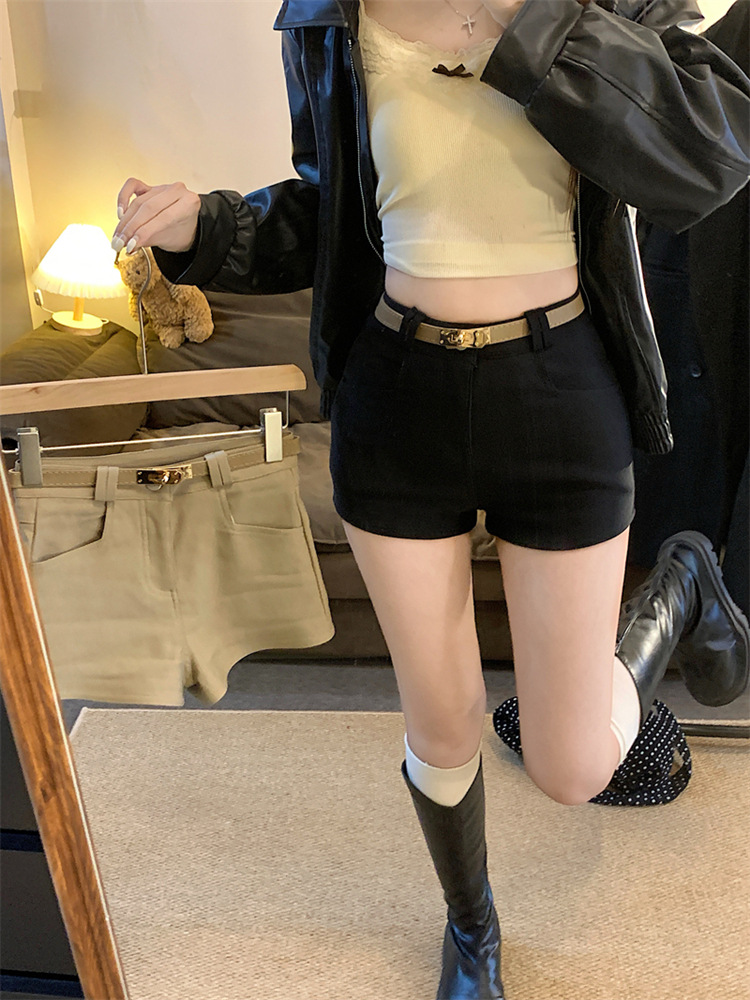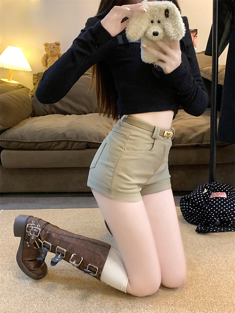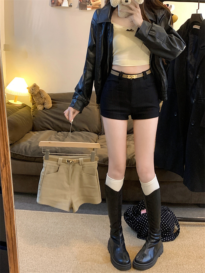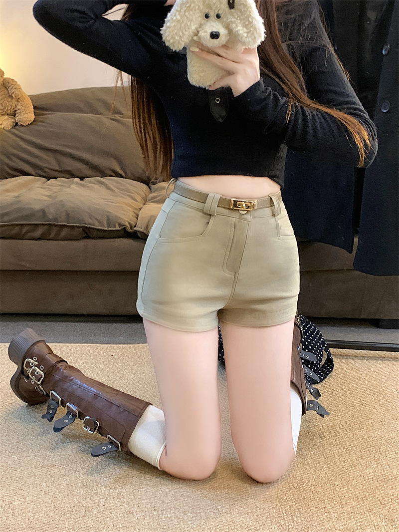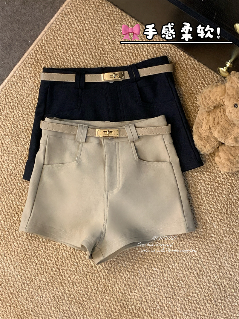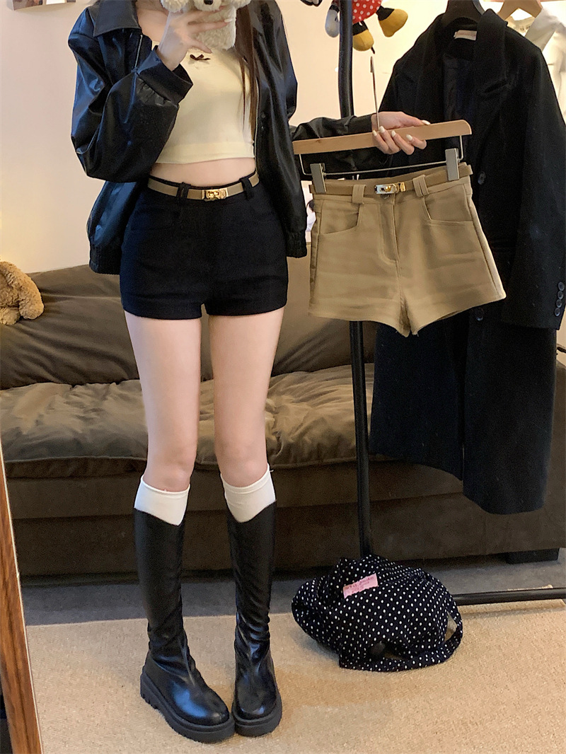 高腰外穿百搭腰带短裤女春秋款辣妹高级感显瘦休闲卡其色加绒靴裤