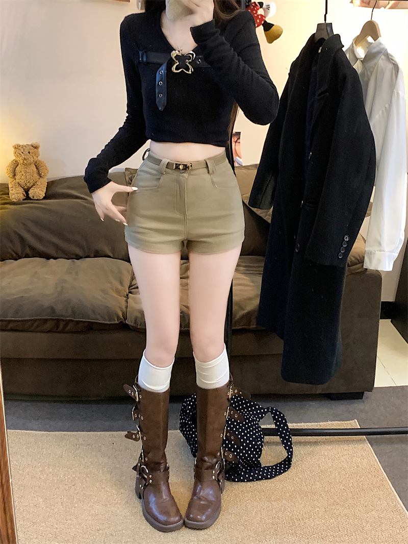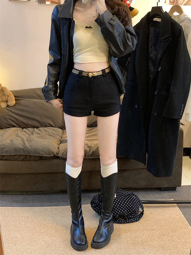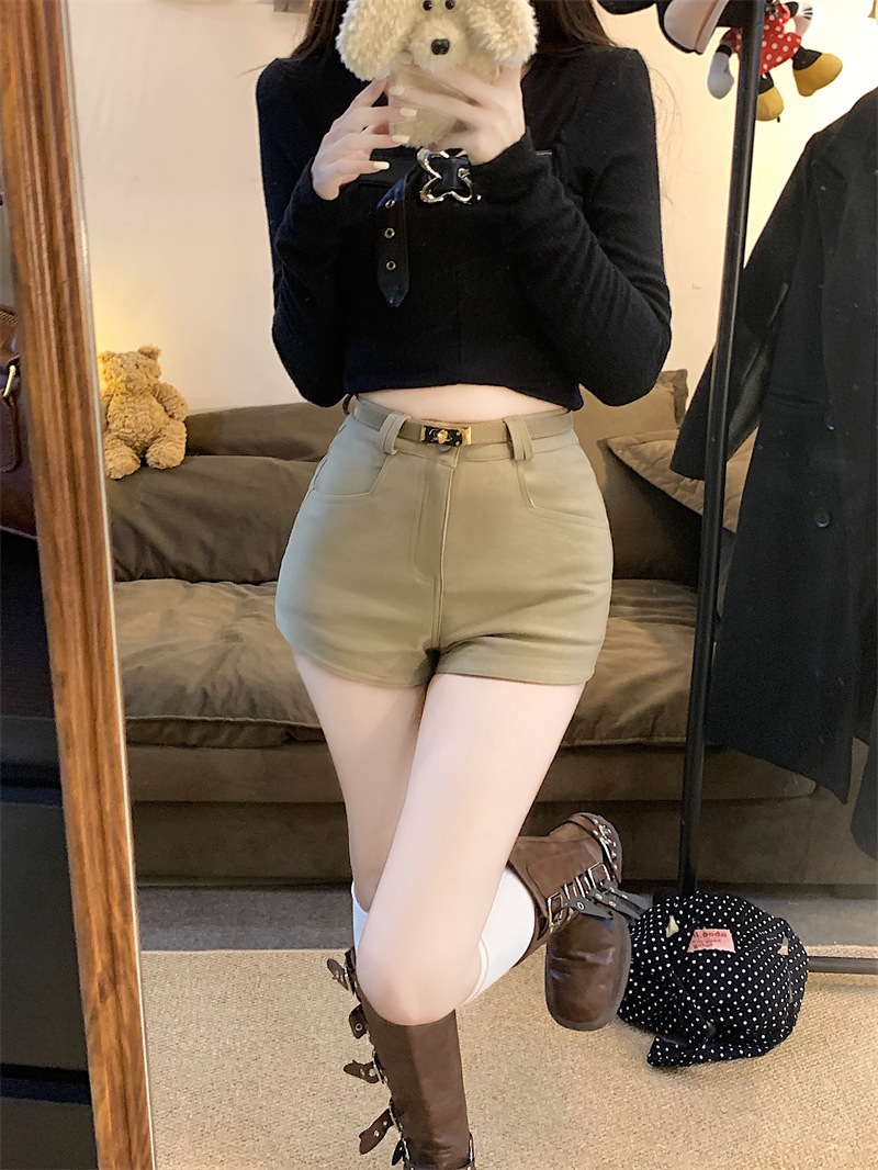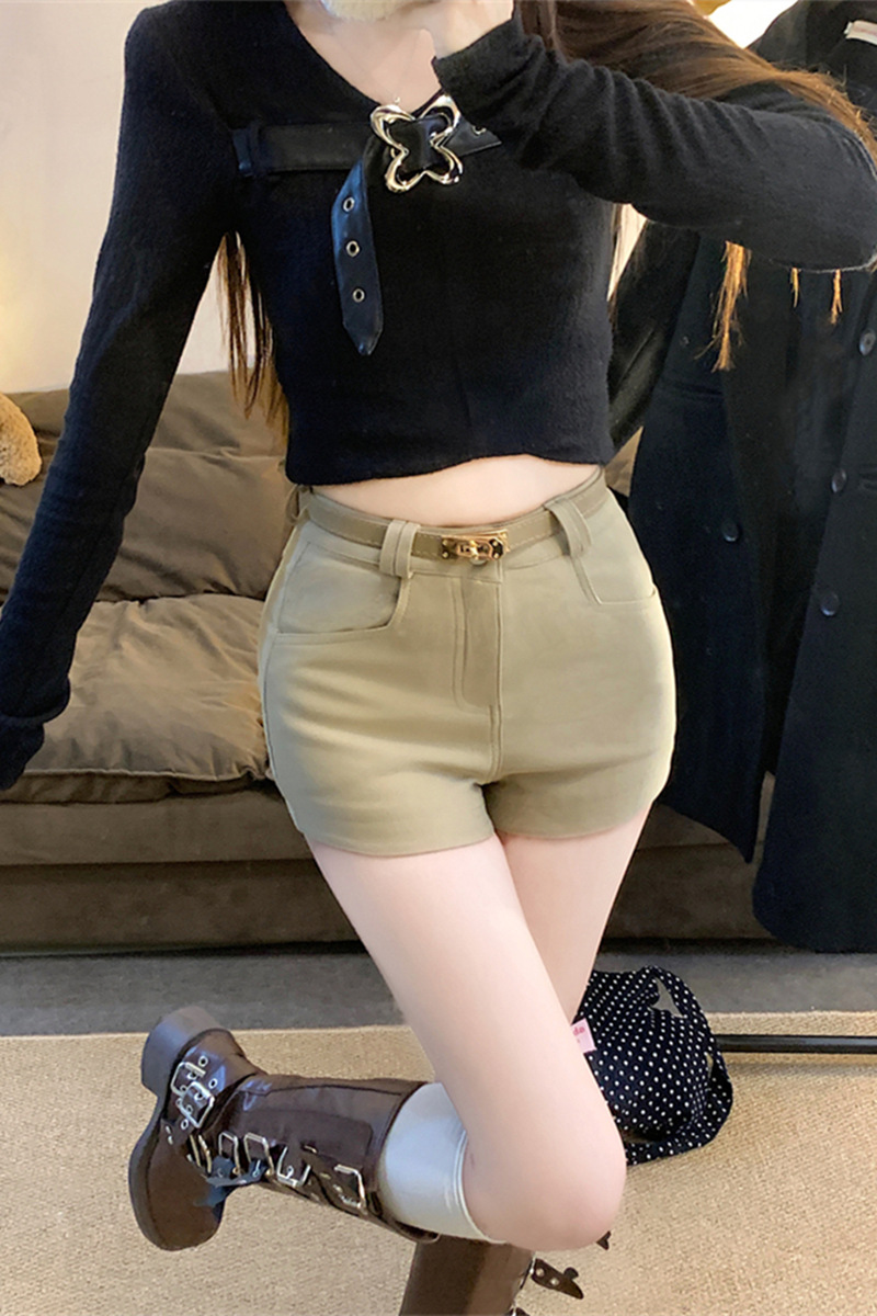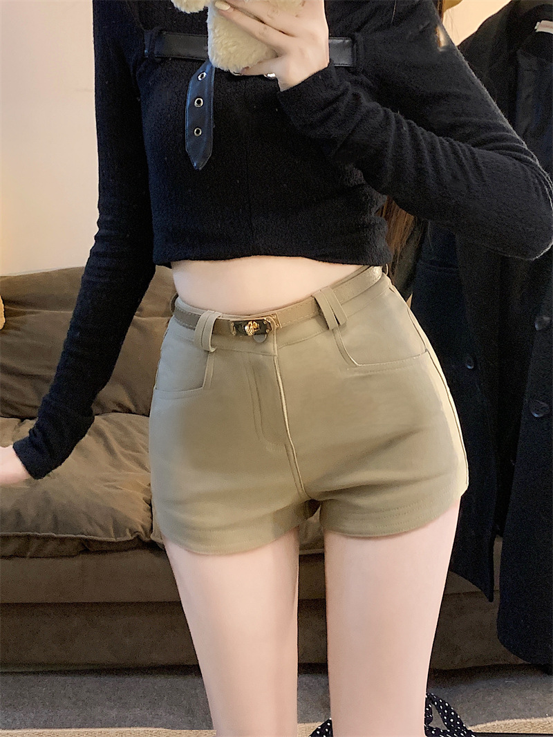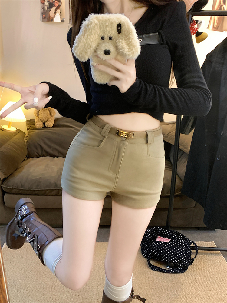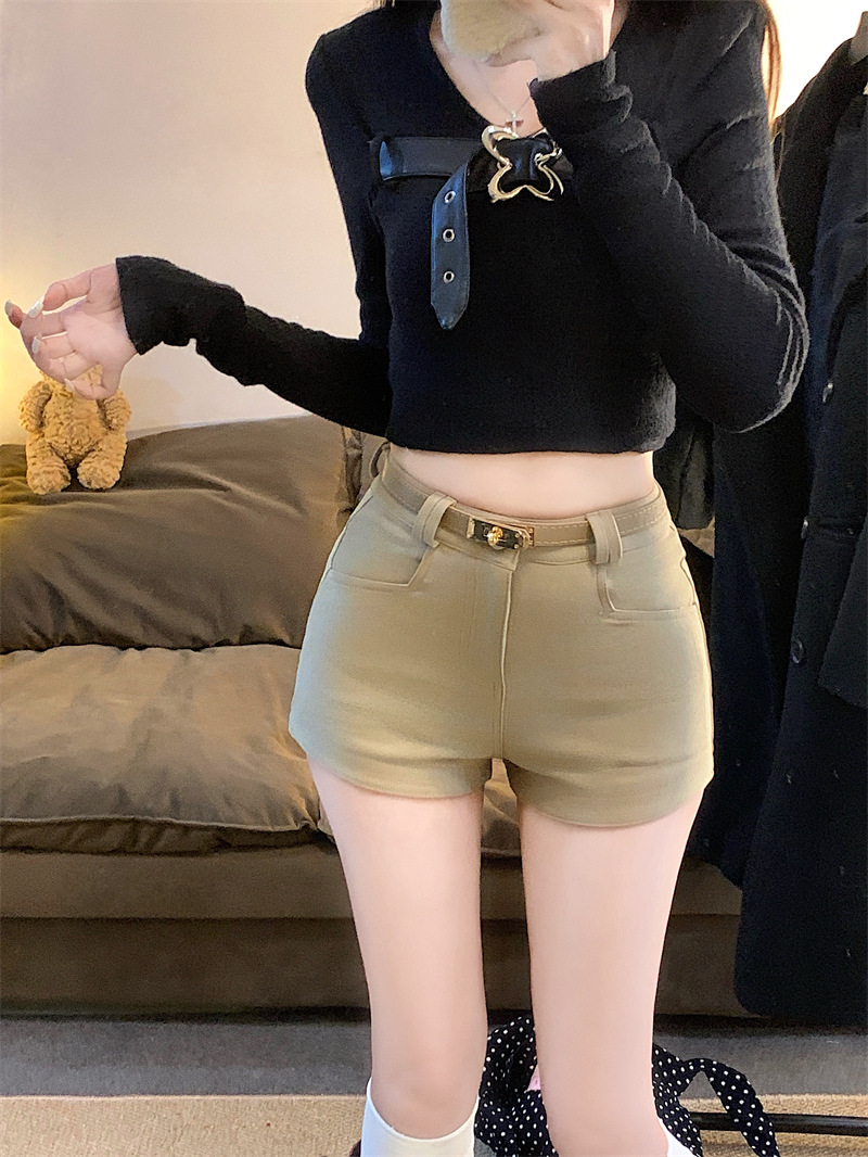 高腰外穿百搭腰带短裤女春秋款辣妹高级感显瘦休闲卡其色加绒靴裤