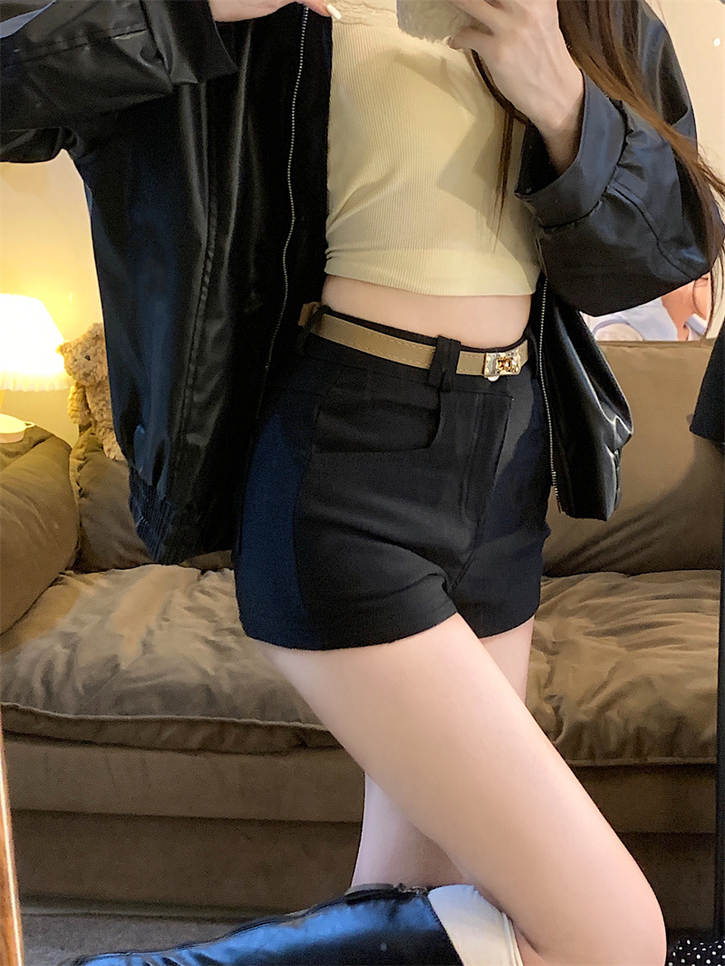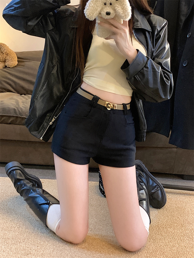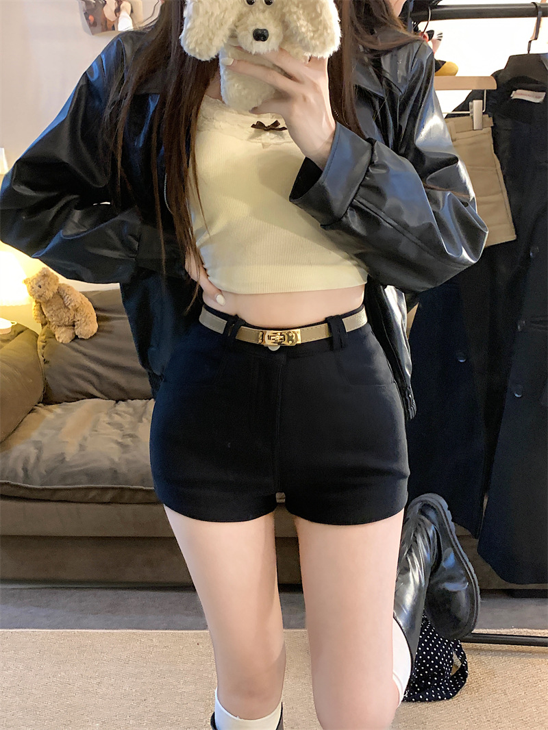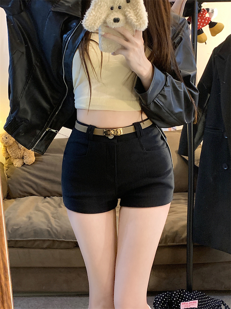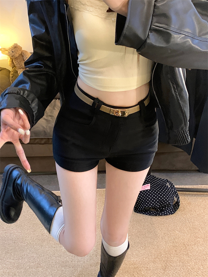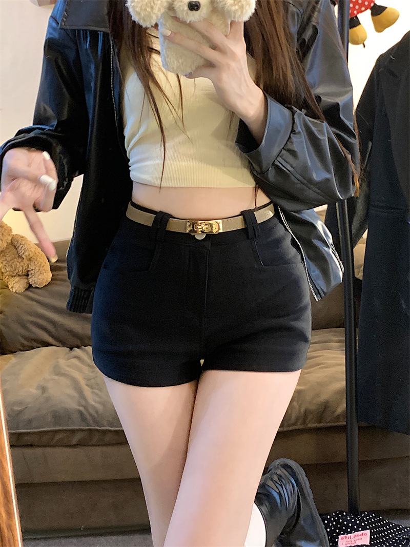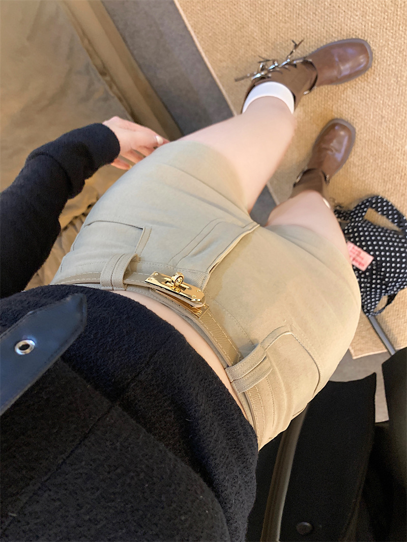 高腰外穿百搭腰带短裤女春秋款辣妹高级感显瘦休闲卡其色加绒靴裤