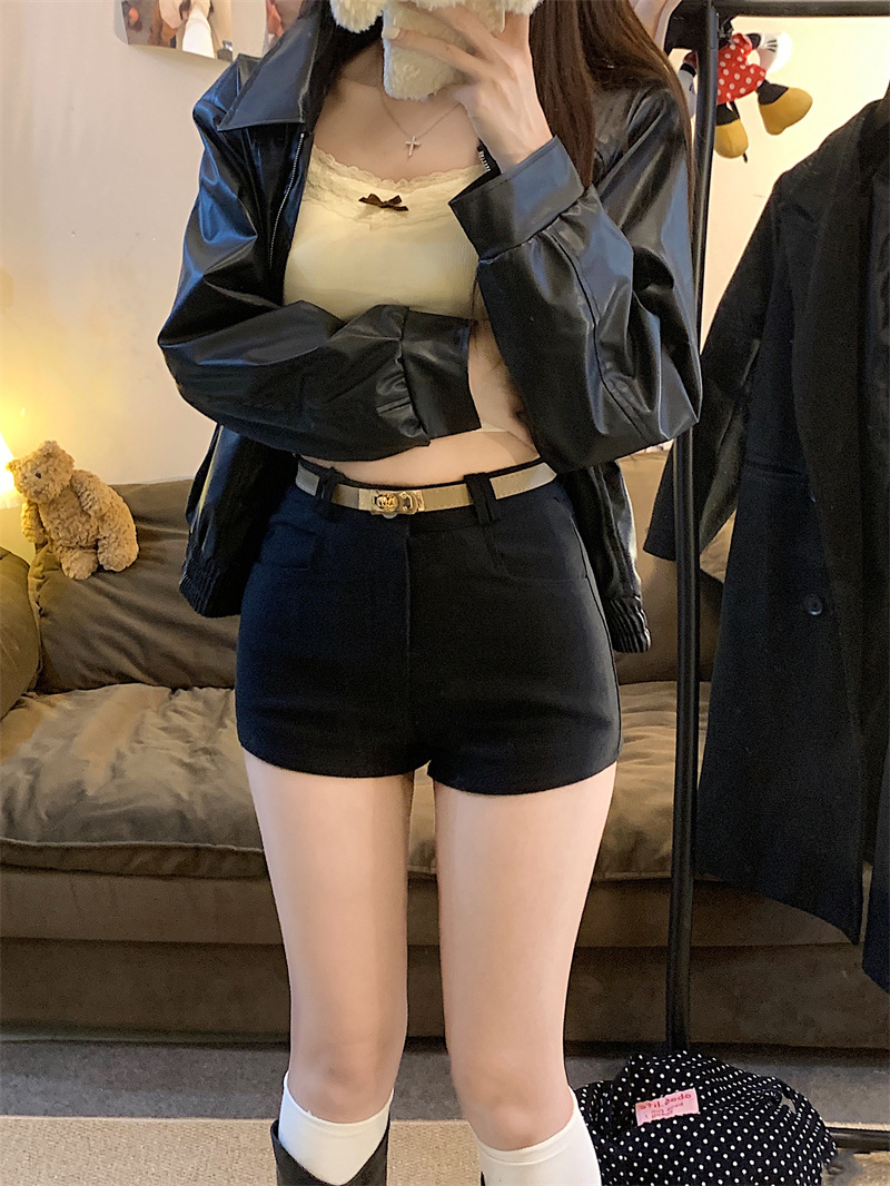 卡其色弹力短裤女大码胖mm秋冬休闲短裤辣妹包臀热裤高腰a字靴裤