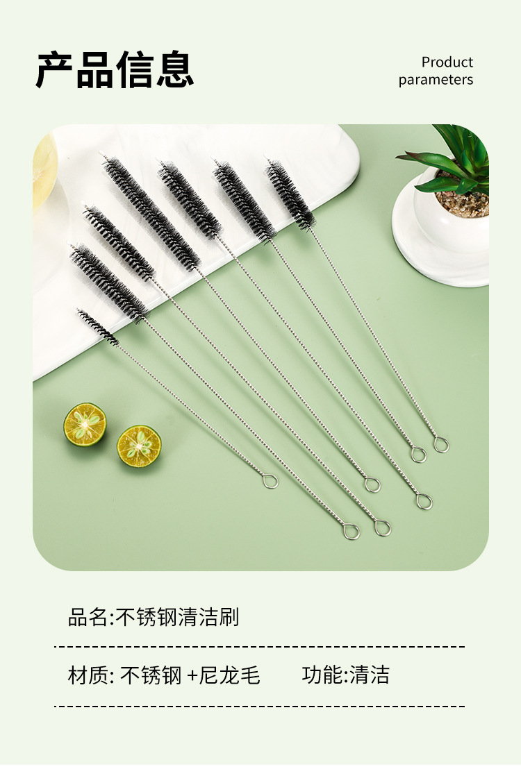 哺乳瓶ブラシ175mmステンレスストローブラシシリカゲル管ブラシガラス管ブラシ竹ストローブラシ304管試験洗浄