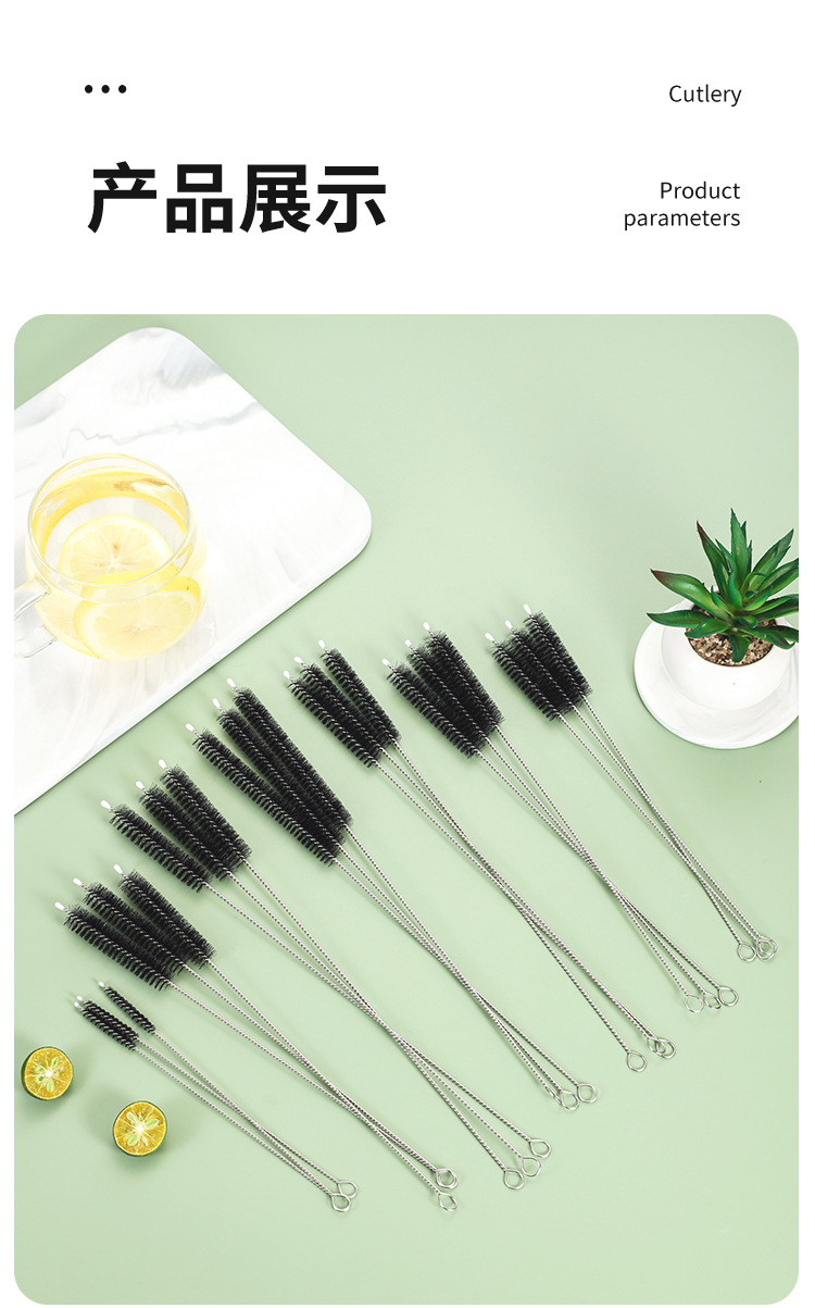 ステンレス钢ストローブラシ304ブラッククリーン毛ブラシガラスミルクボトルブラシ175个性300CM长さ200mm毛ブラシ