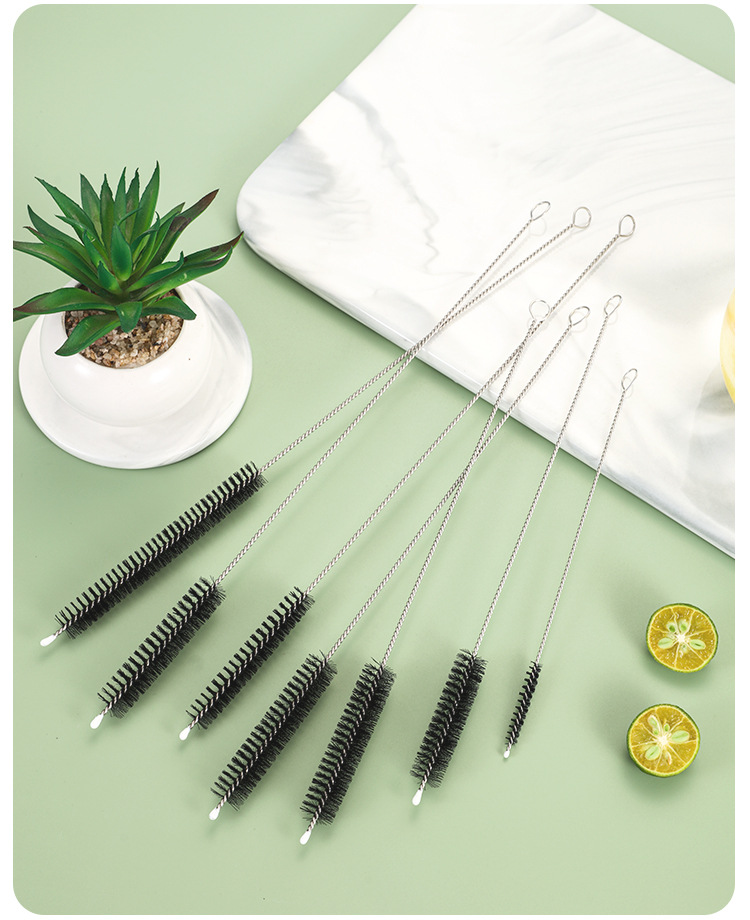 304 ステンレス鋼ストローブラシパイプブラシナイロンスパイラル試験管ブラシ柔らかい毛ギャップブラシガイドブラシメーカー