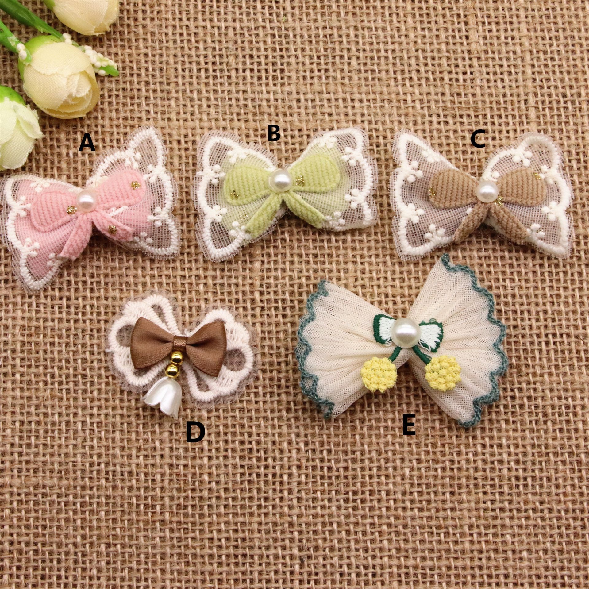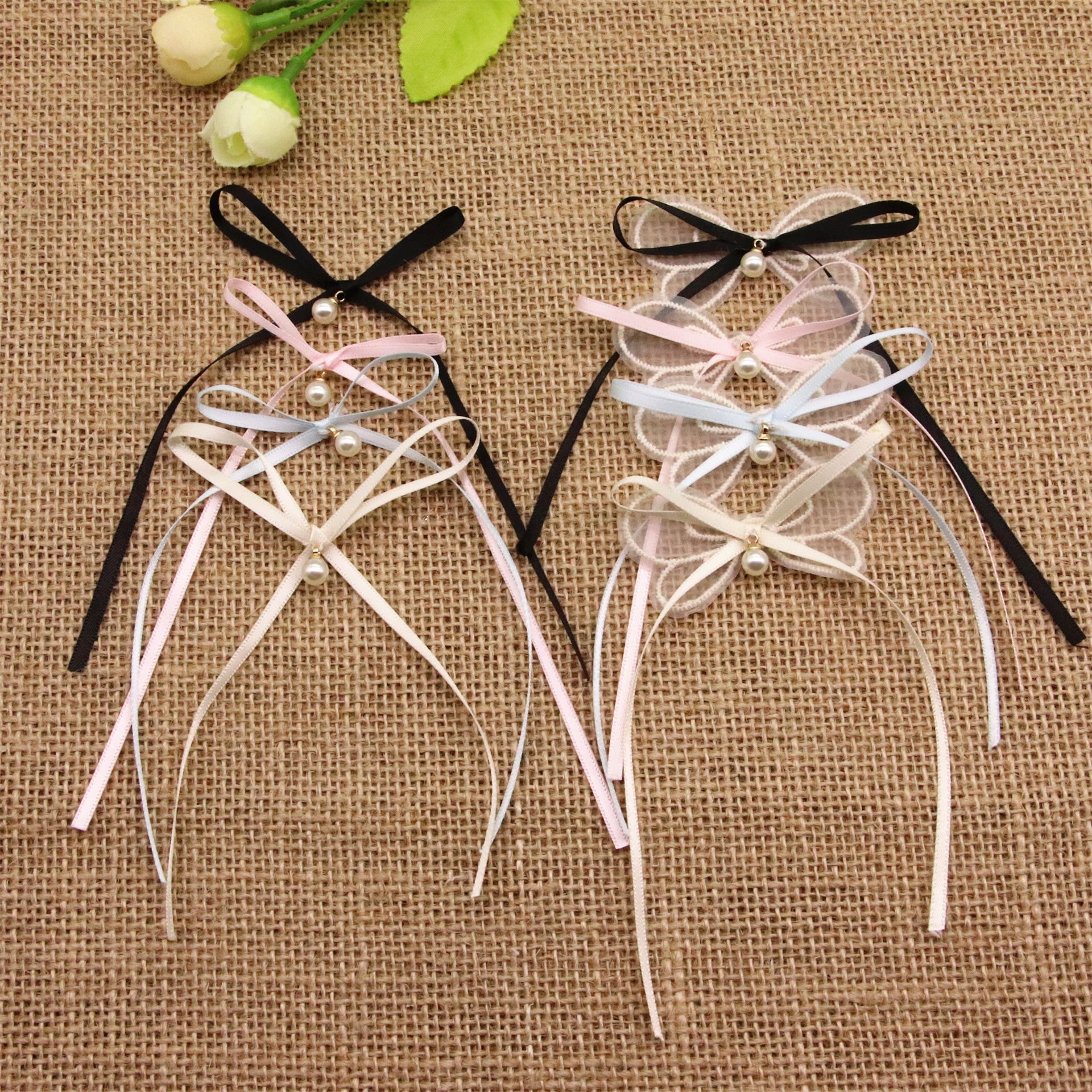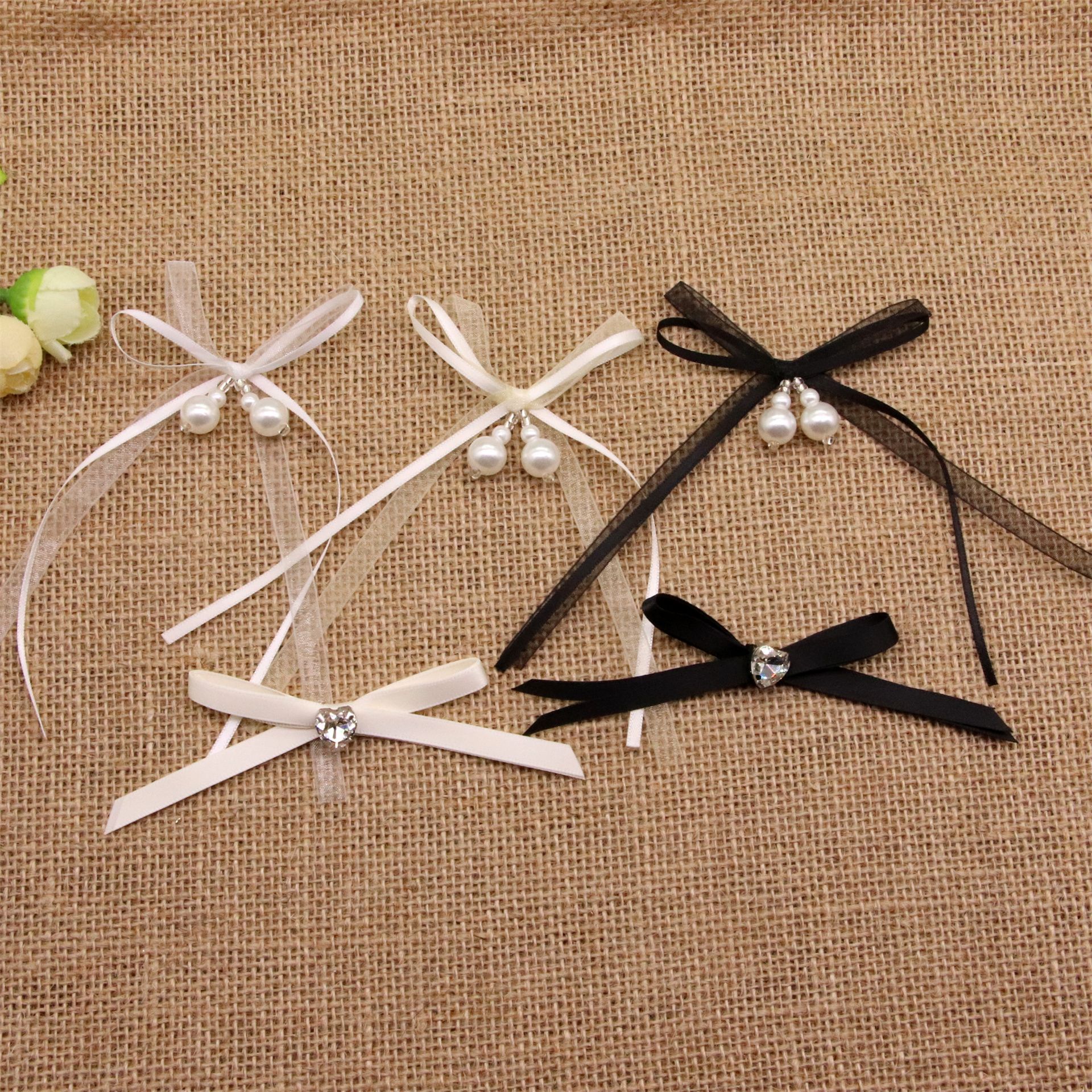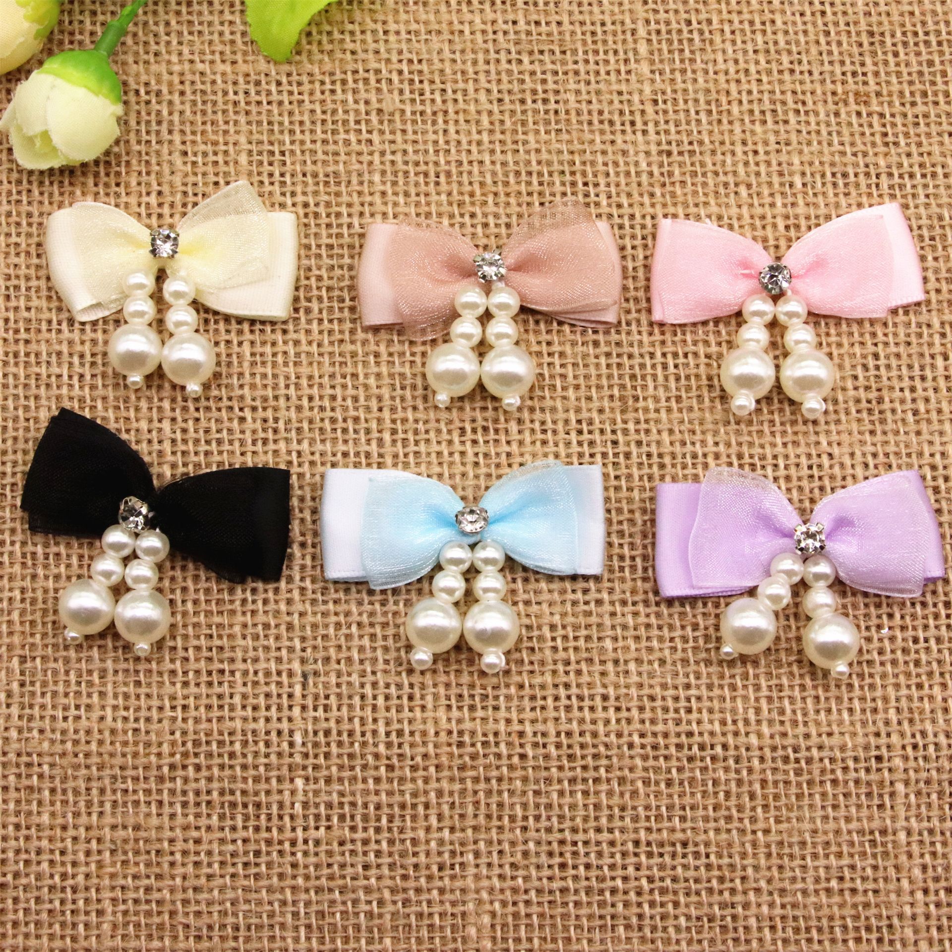 春夏真珠網糸蝶結び子供靴靴下服飾装飾diy蝶ネクタイ髪ひもアクセサリー材料
