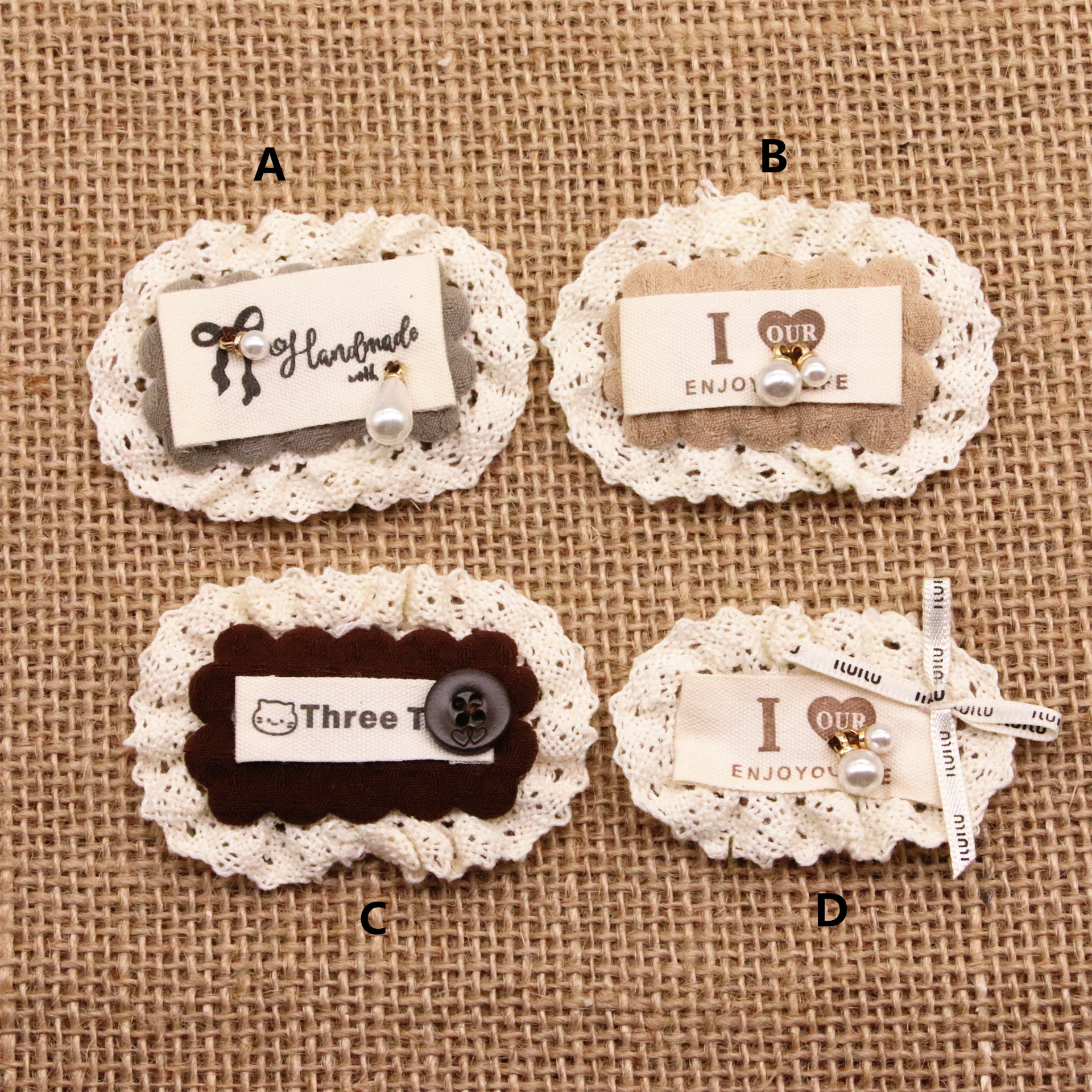 手缝珍珠小标签蕾丝边长方形配饰 diy发饰头饰包包鞋袜装饰辅料
