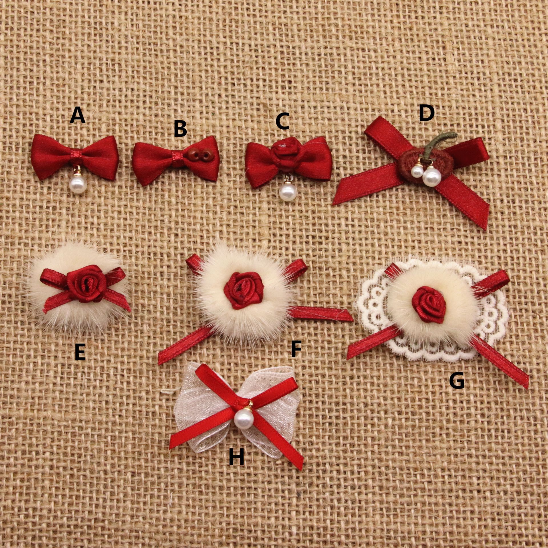 红色新年款仿貂毛球蝴蝶结蕾丝刺绣贴 复古头饰配饰胸针辅料布贴