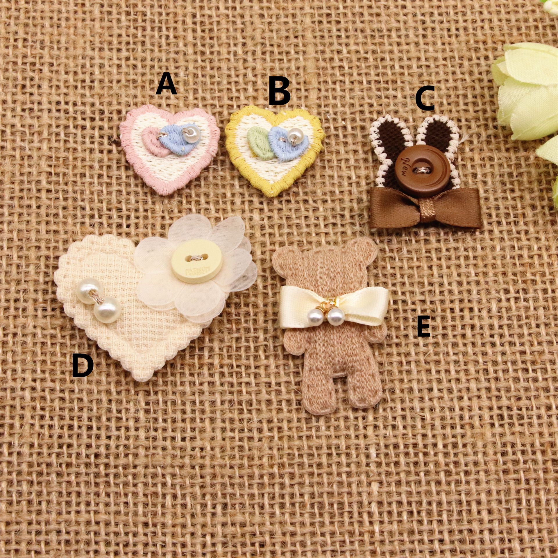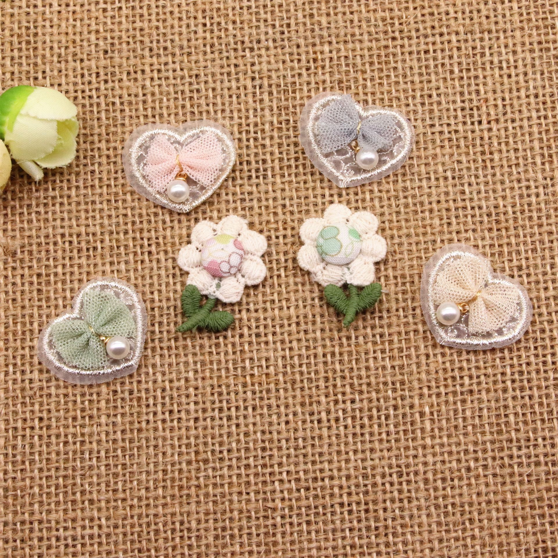 可爱小花熊绣花桃心珍珠兔子饰品配饰 diy鞋袜帽子包包装饰辅料