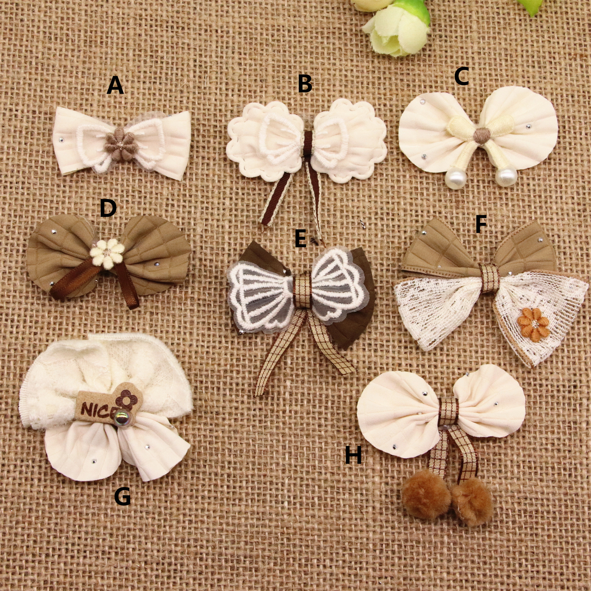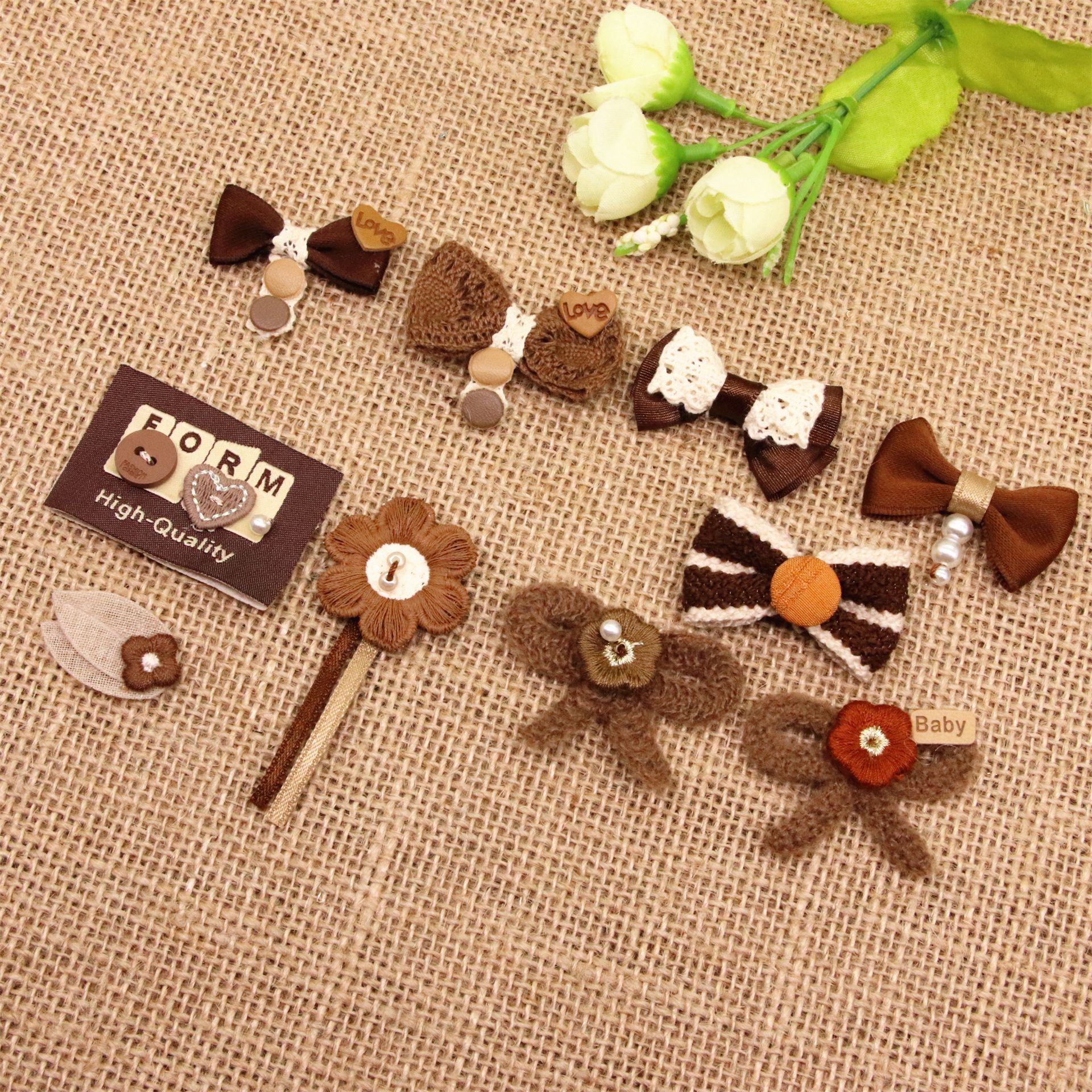 コーヒー色の漫画の布芸の蝶結びの花の布は帽子の服装を包んで装飾します。