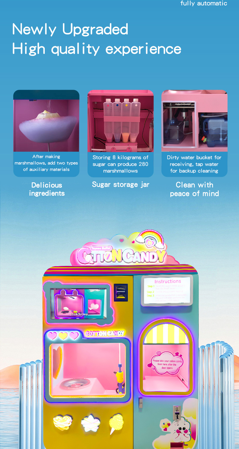全自動綿菓子製造機、無人セルフ販売機、綿菓子製造機、遊園地用商業施設販売機