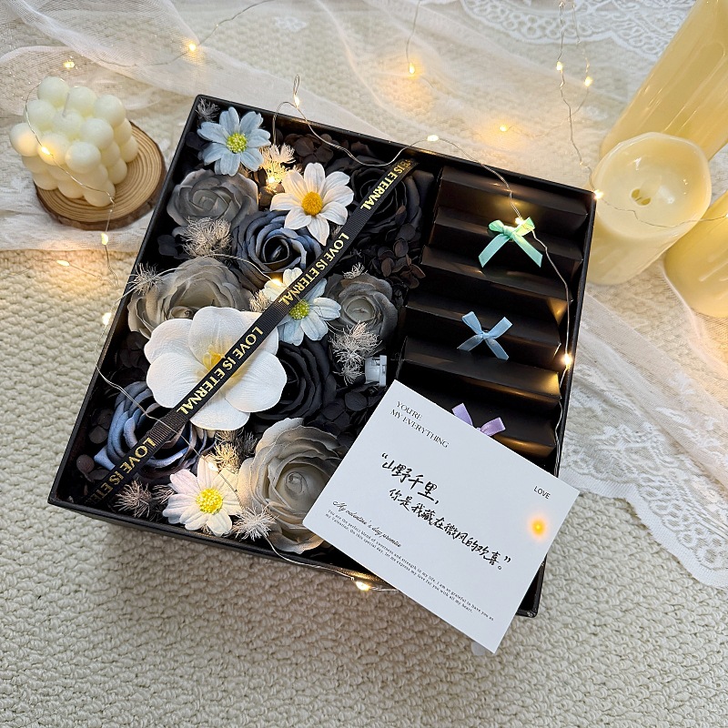 DIY香烟方形礼盒香皂花材料包送男友情人节生日礼物七夕圣诞节通