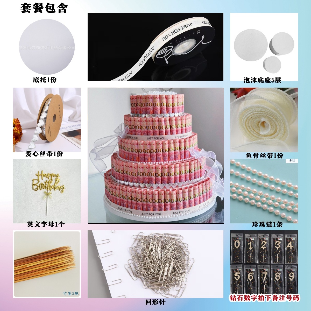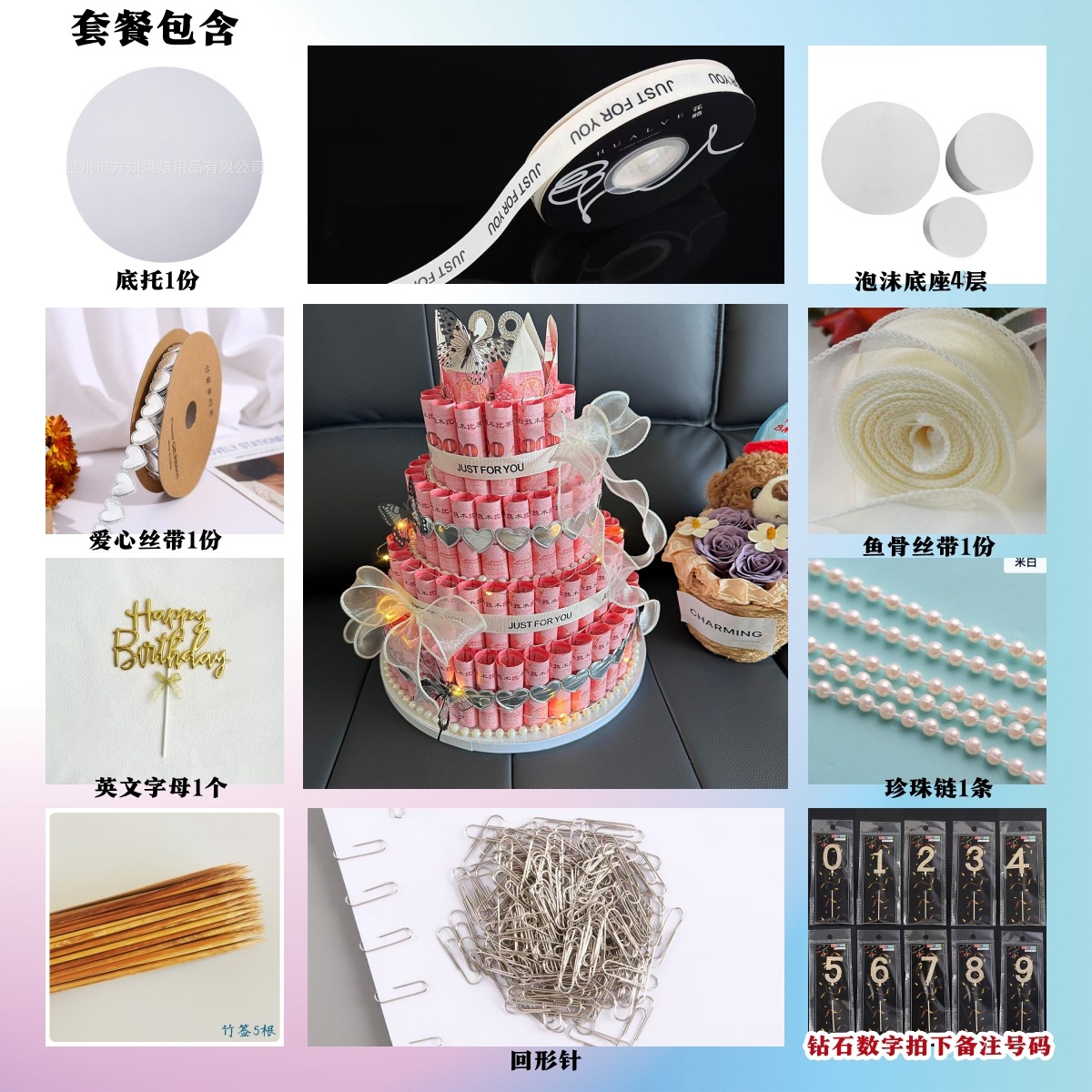 肥牛卷有钱花蛋糕材料包DIY制作蛋糕多层自制创意花束泡沫模型
