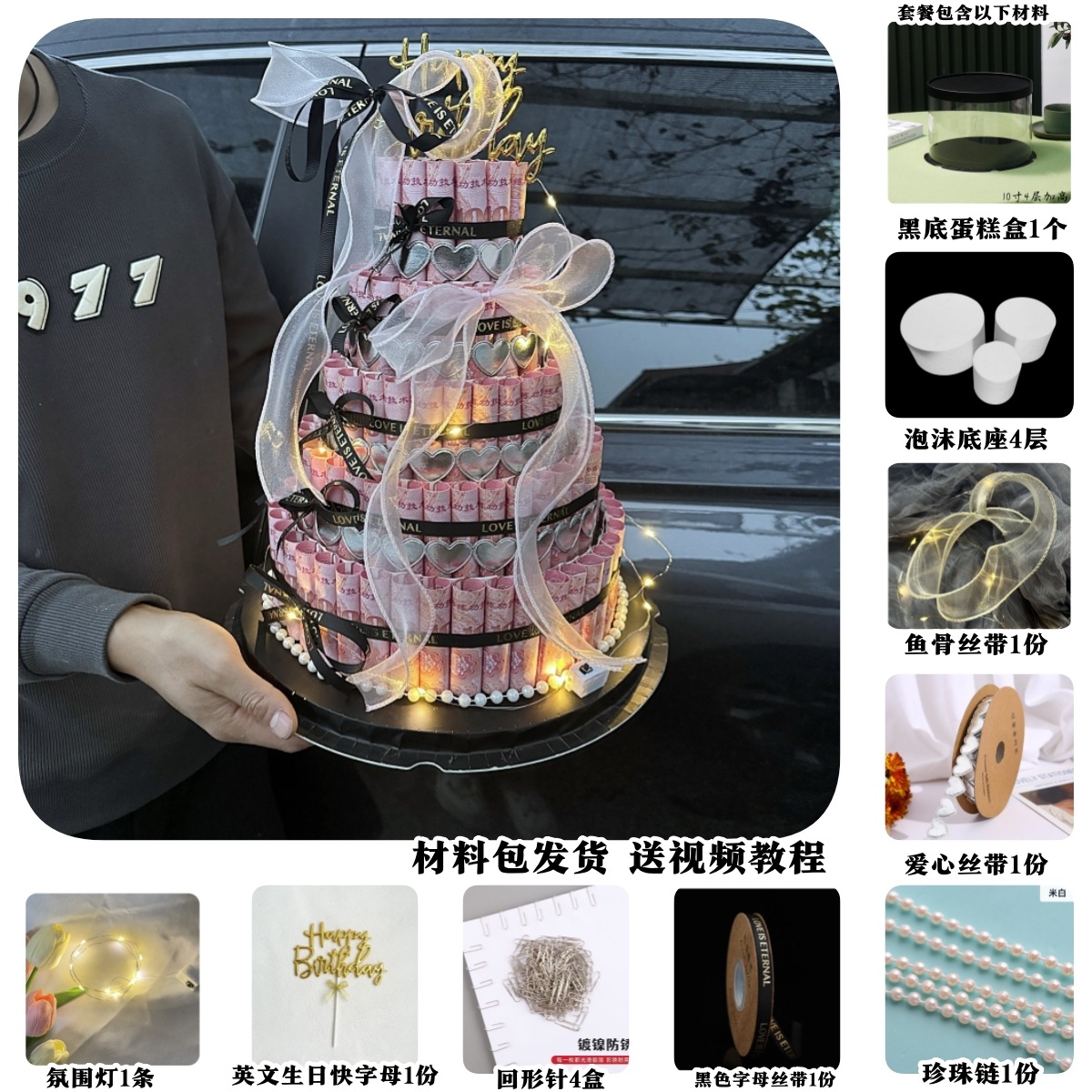 送女友高档牛肉卷有钱花蛋糕套餐材料包全套惊喜生日礼物求婚手工