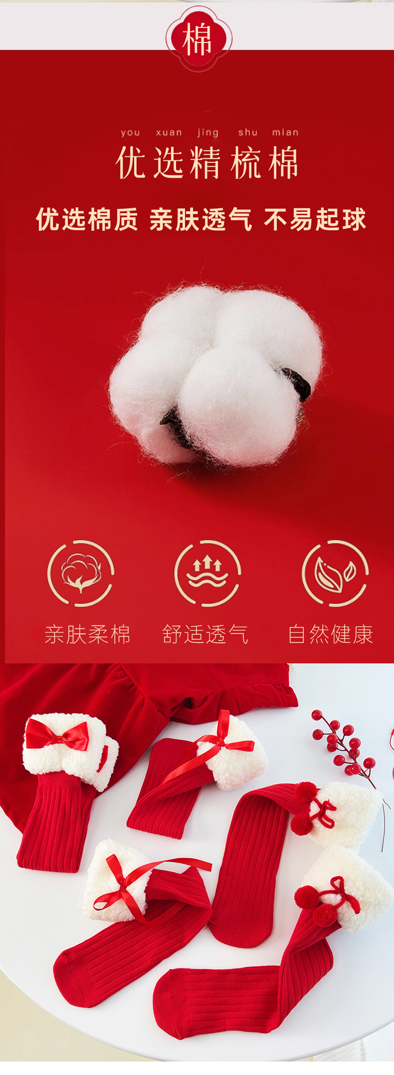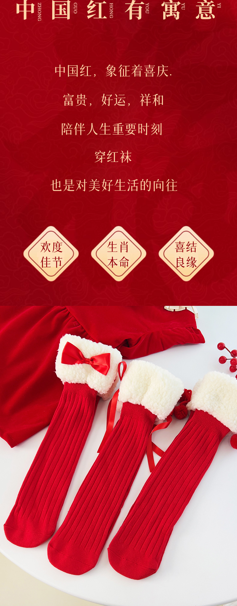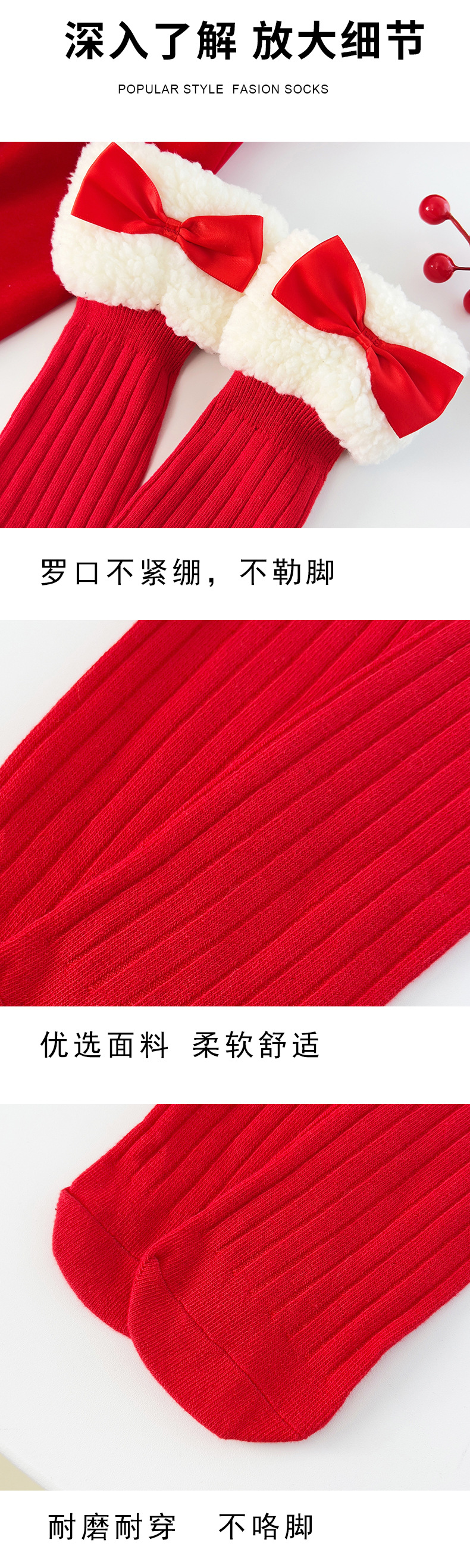 【新品】新年袜子中筒秋冬季女童红色蝴蝶结中小童8岁3新年长筒袜