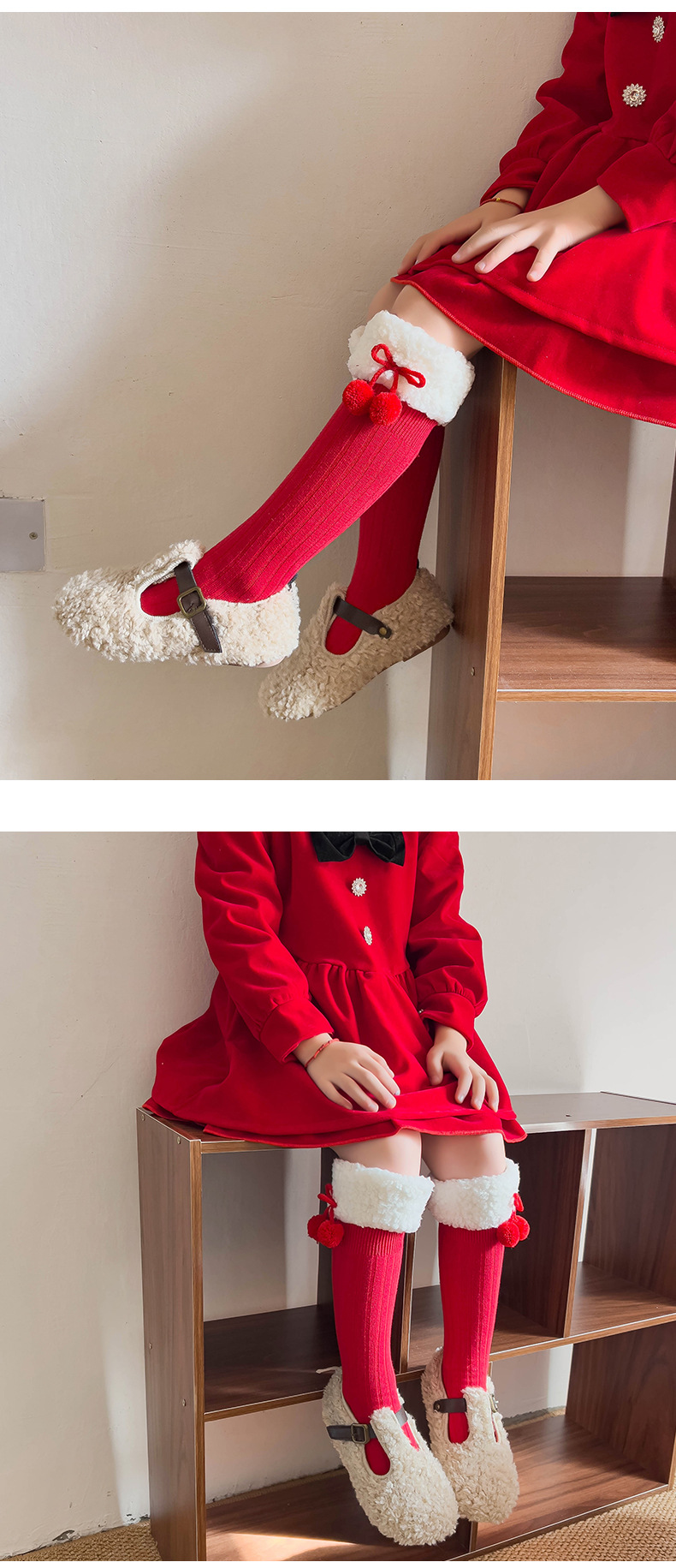 子供用ラムウールミッドカーフソックス 秋冬 韓国風 可愛い フリース 暖かい 新年ソックス 女の子 プリンセス ソフトなふくらはぎ丈ソックス