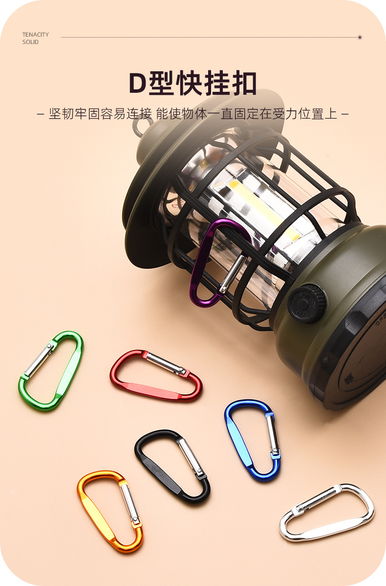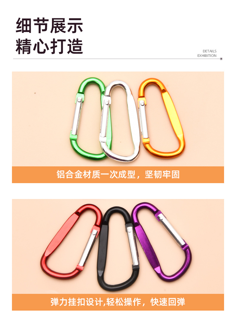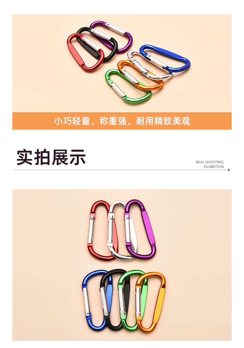 现货6号D型压扁铝合金登山扣 户外小水壶扣 充电宝挂钩