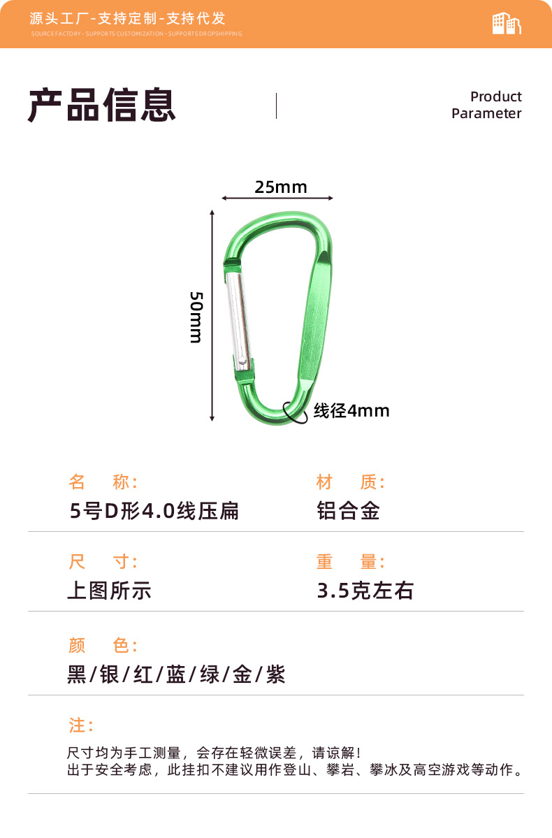5D打扁登山扣铝合金快挂水杯挂钩织带挂钩箱包扣齐全齐全现货齐全