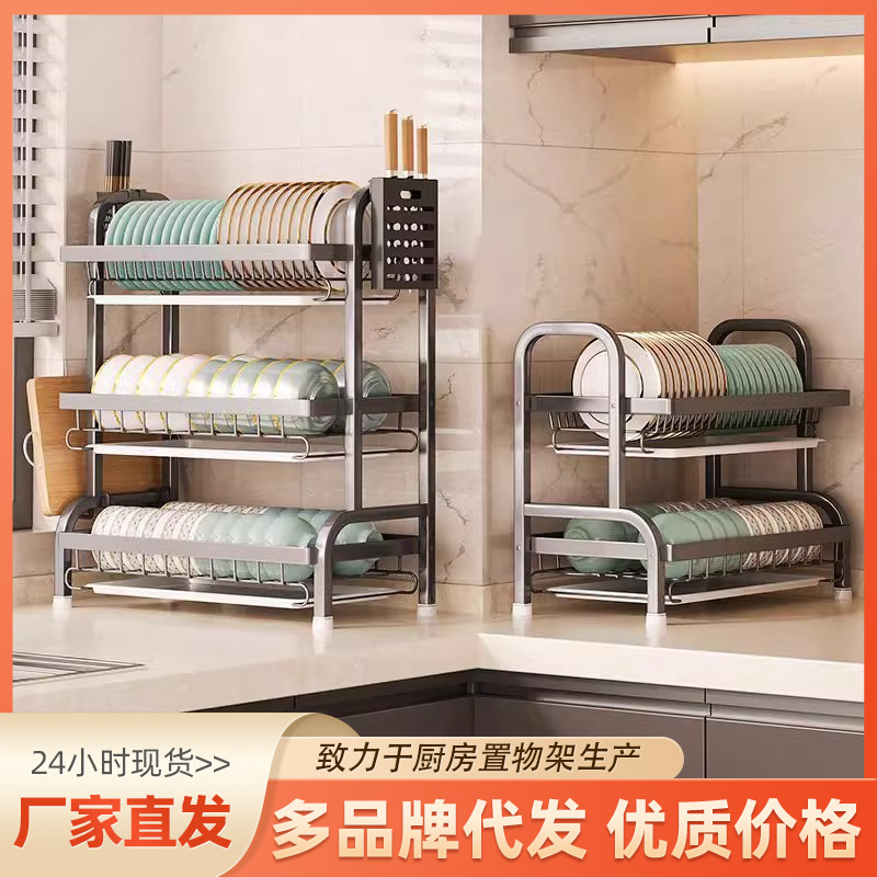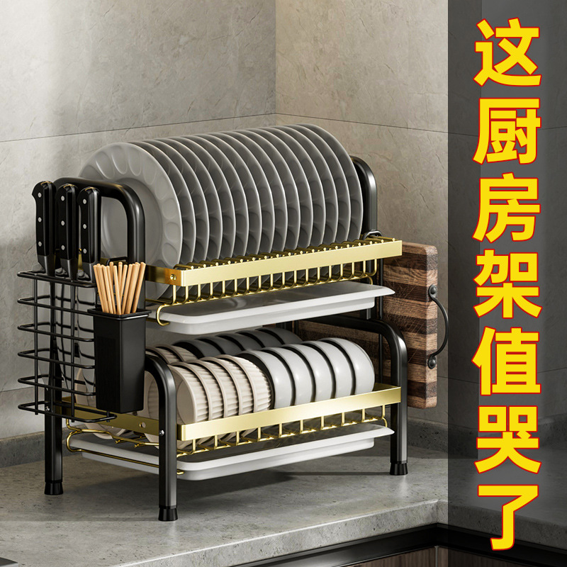 加厚厨房碗碟置物架碗盘筷子沥水架刀架砧板收纳盒灶台多层整理架