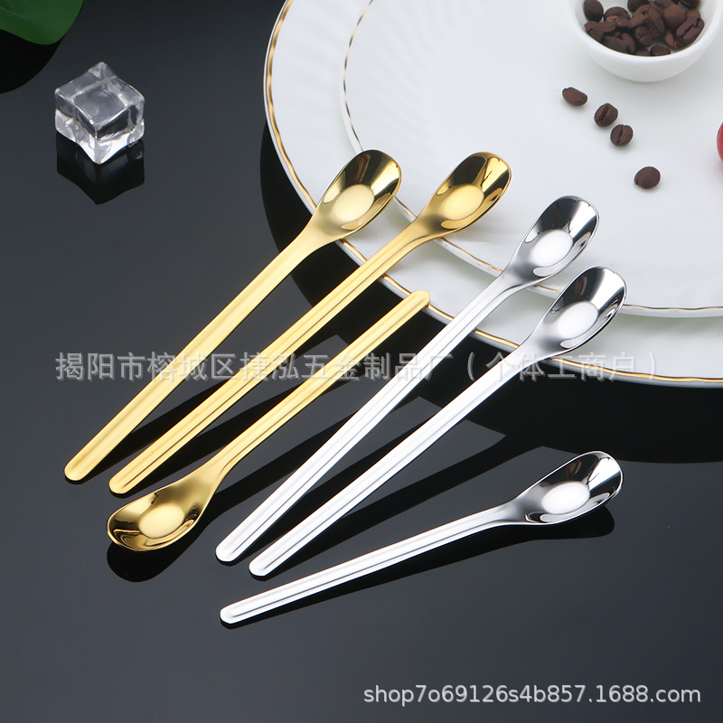 304ステンレス製小型スプーン、高級感のある金色の丸型スプーン、越境販売用スプーン、ステンレス製長柄スプーン、コーヒースプーン、カスタムメイド
