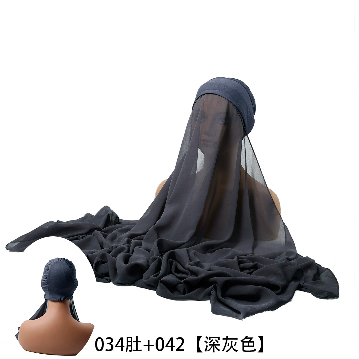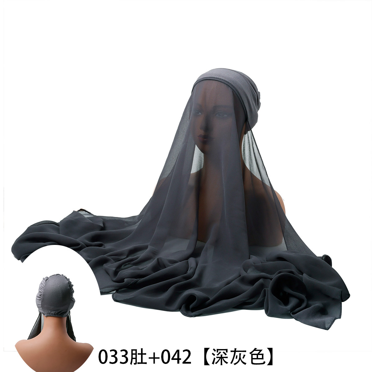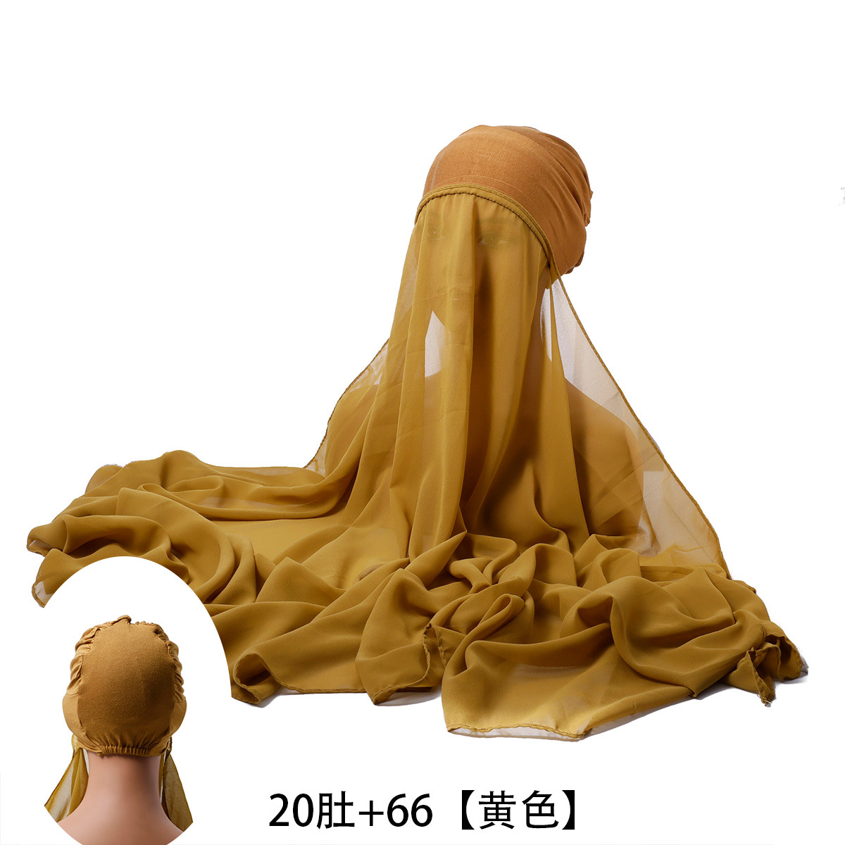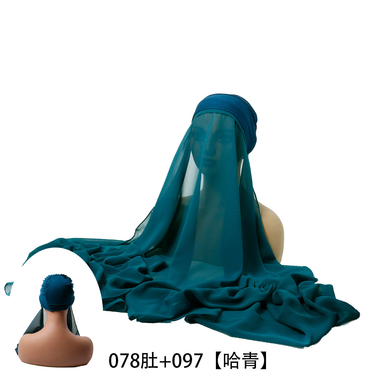 新作シフォンヘッドスカーフとベースキャップのセット、単色パールシフォンロングスカーフとベースキャップの一体型セット