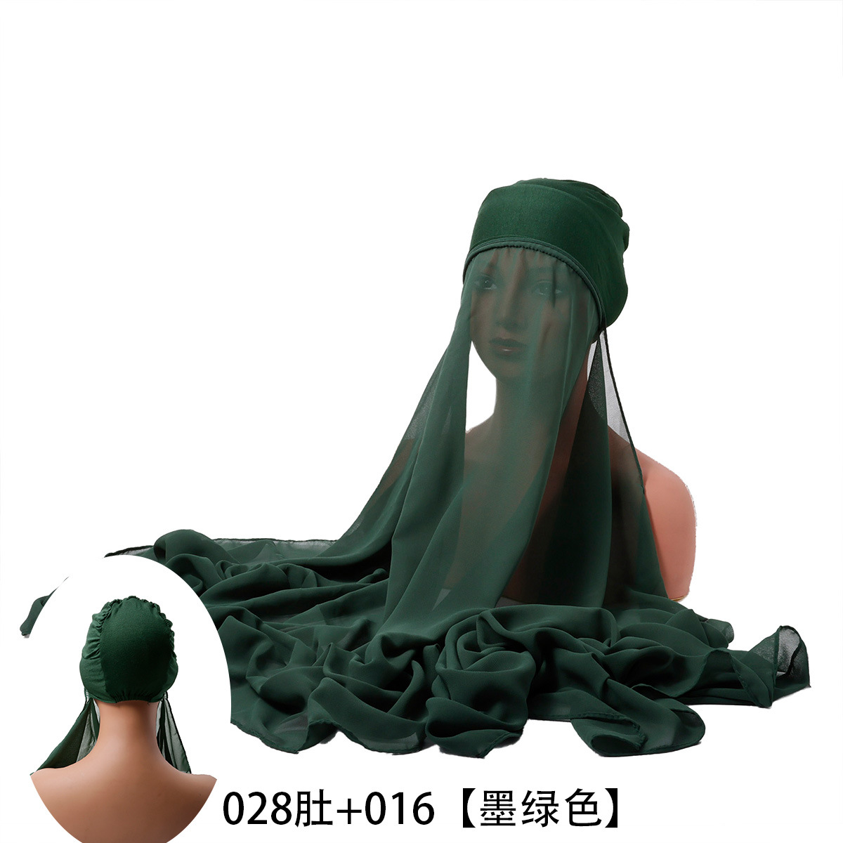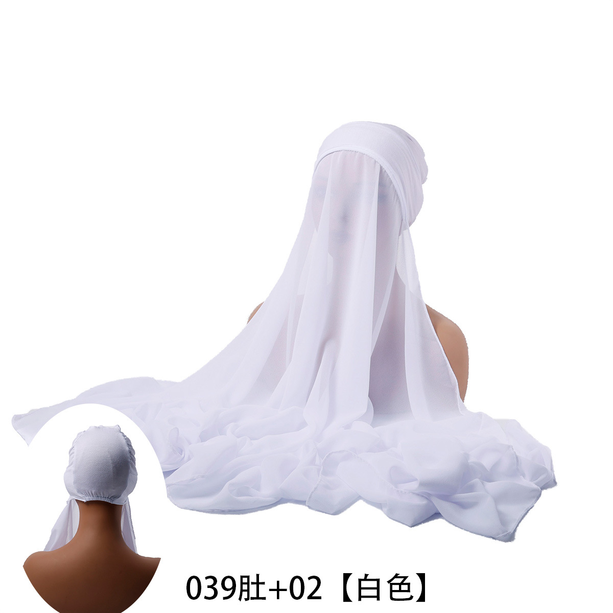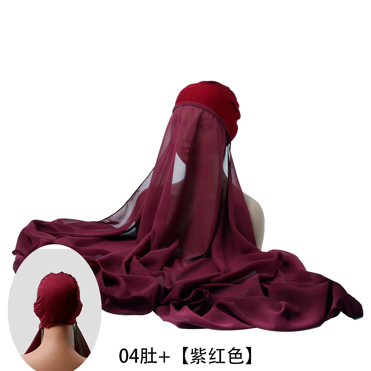 新作シフォンヘッドスカーフとベースキャップのセット、単色パールシフォンロングスカーフとベースキャップの一体型セット