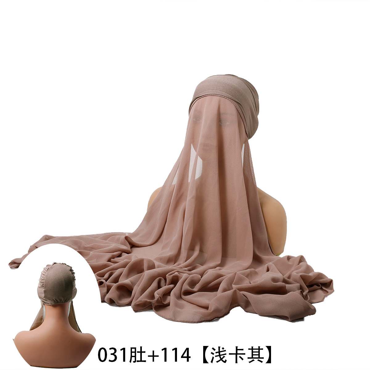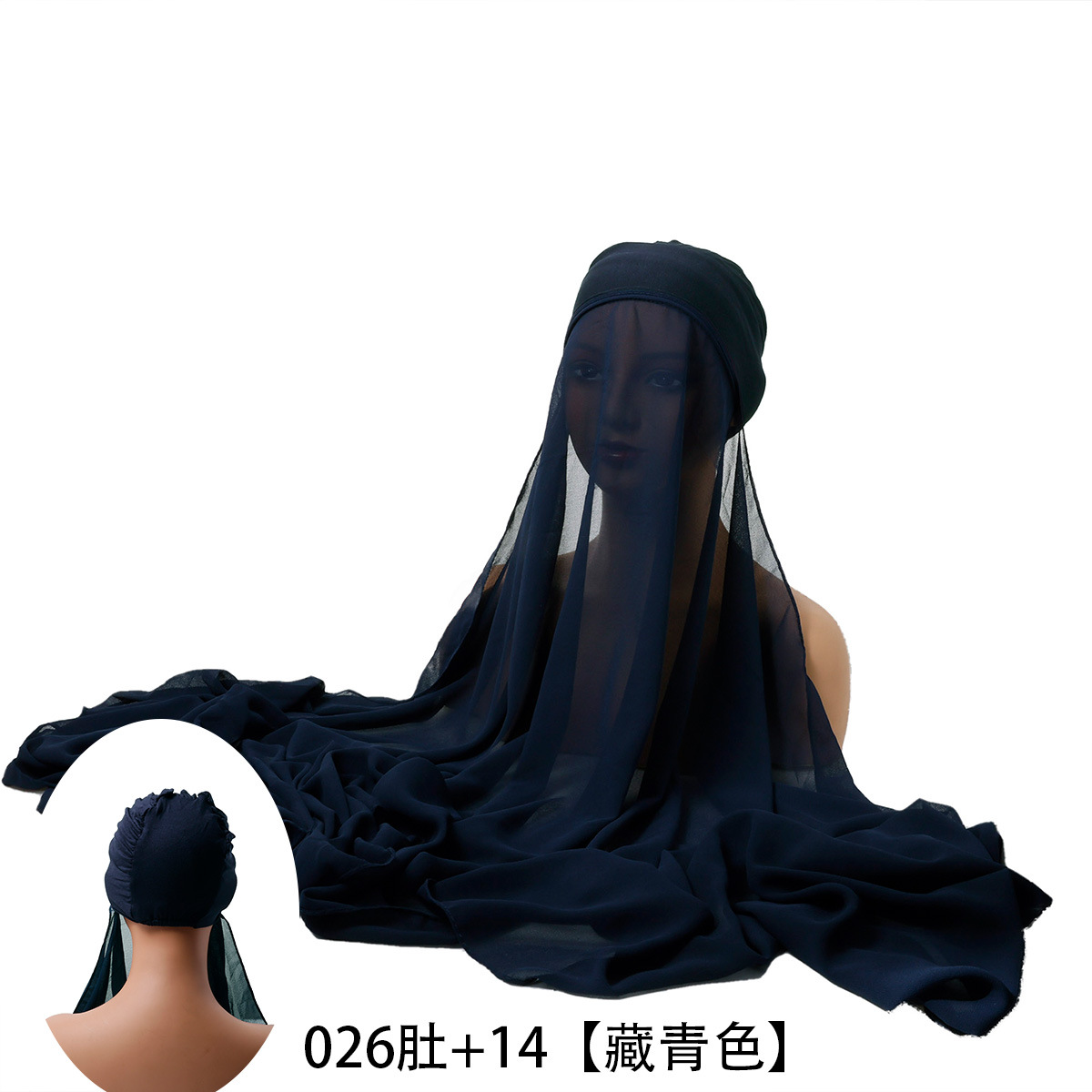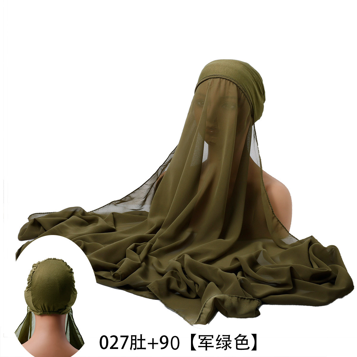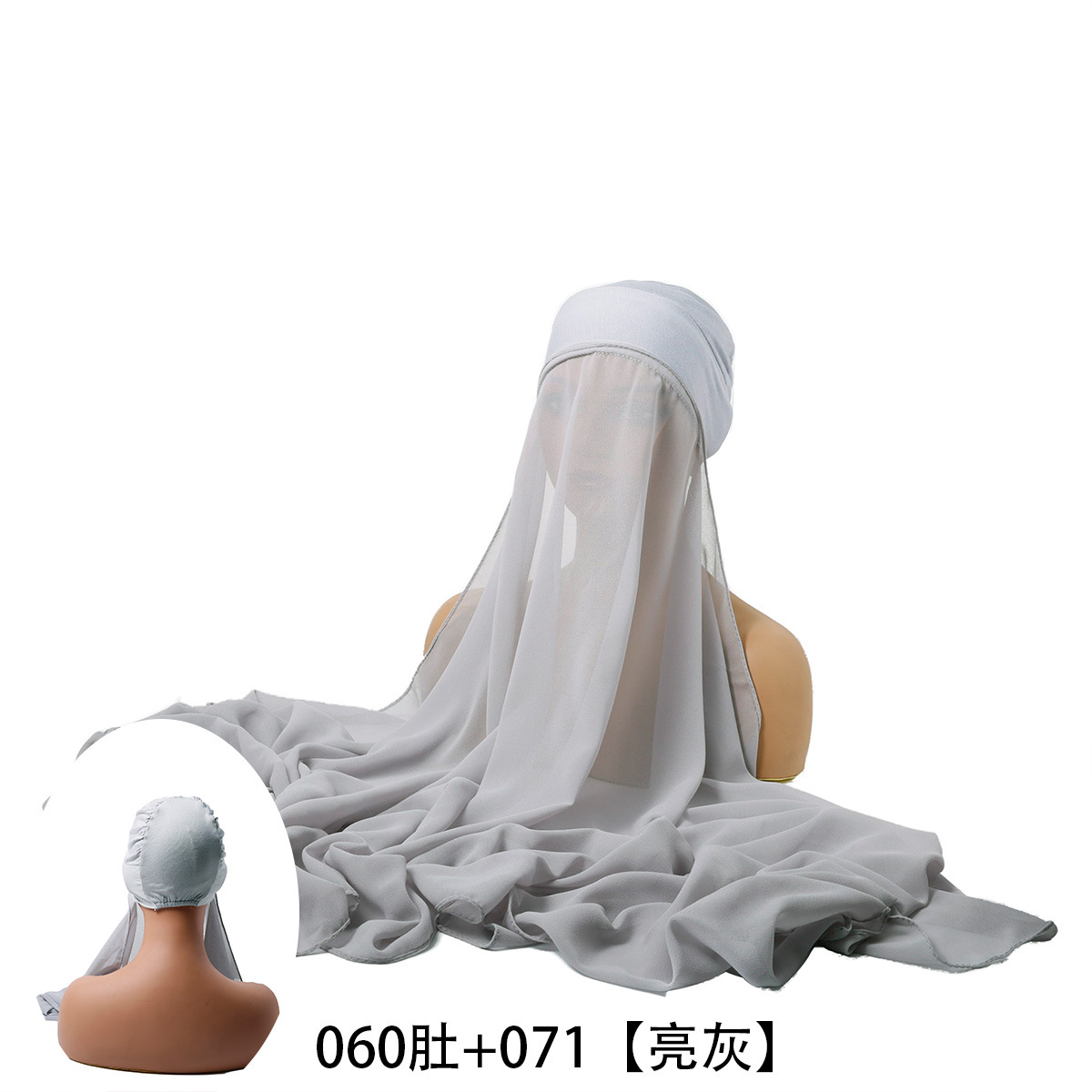 新作シフォンヘッドスカーフとベースキャップのセット、単色パールシフォンロングスカーフとベースキャップの一体型セット