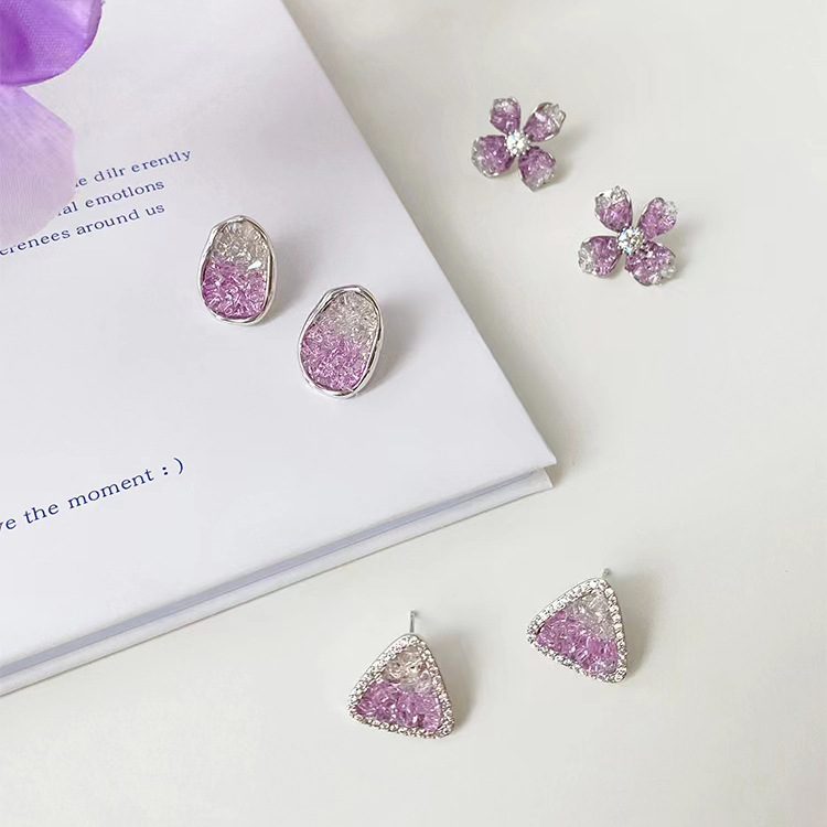 春夏新作高品質軽豪華高貴紫グラデーション水晶ピアス角型大衆デザイン軽豪華イヤリング耳飾り
