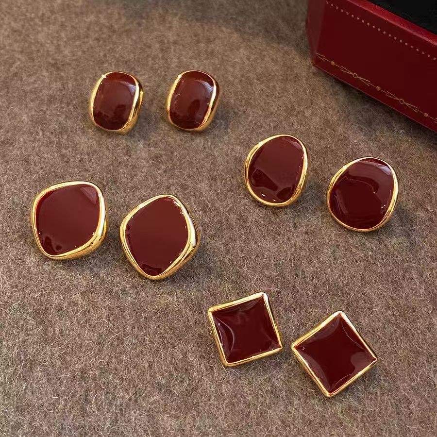 高級感のあるワインの赤い色のイヤリングのレトロなフランス式のシンプルなイヤリングの気質の香港風秋冬2024年の新型の女性