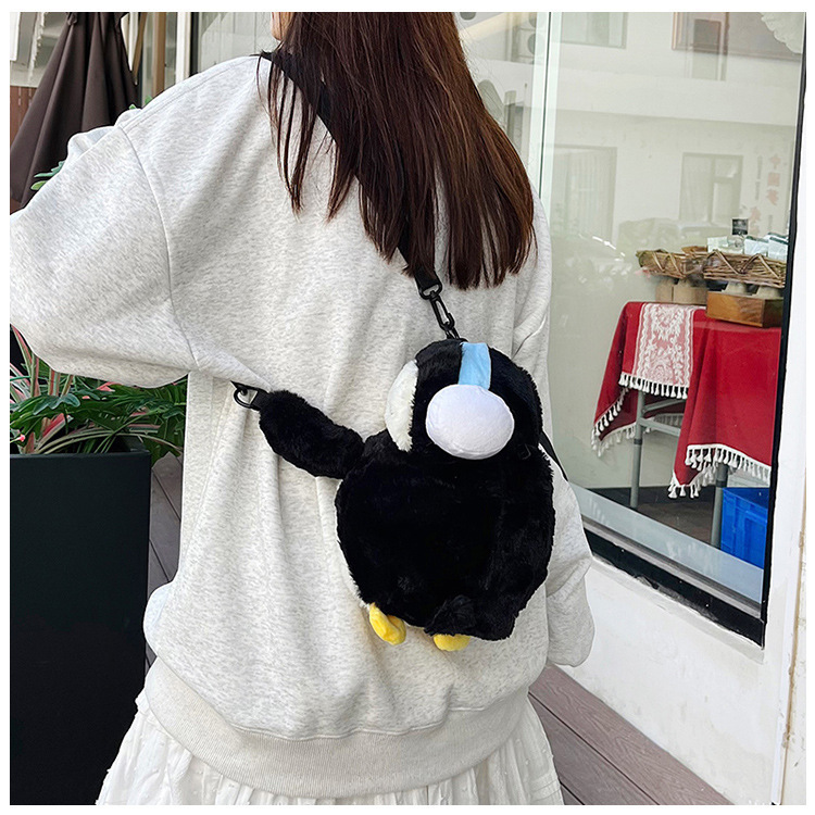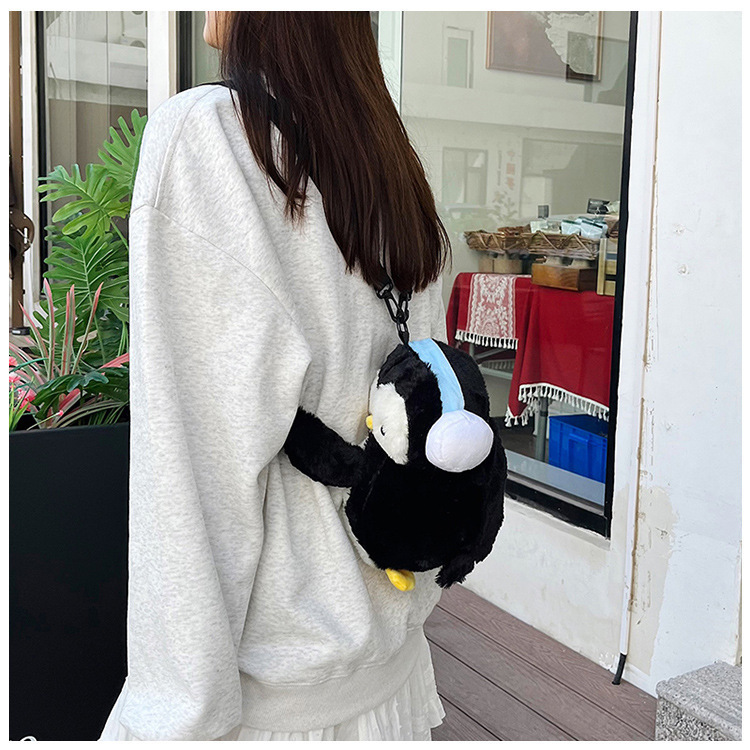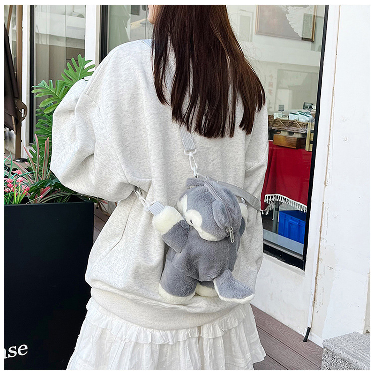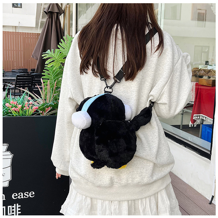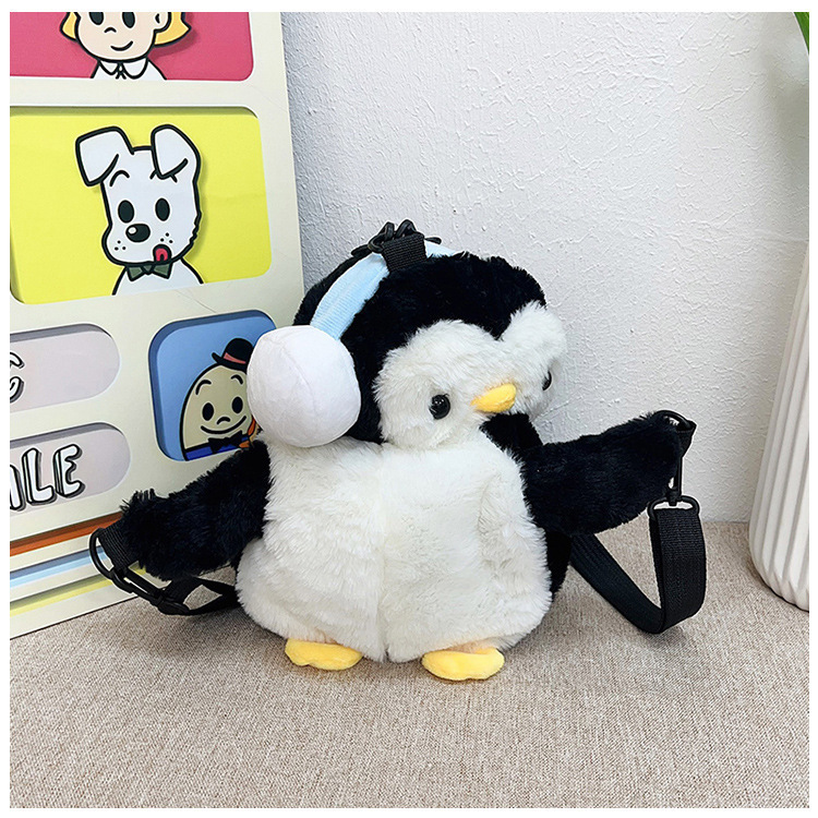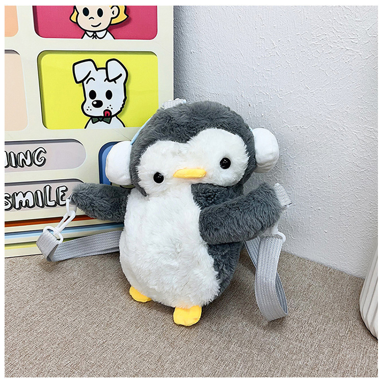 クロスボーダー卸売りペンギンの羊が腹ばいになってかわいいぬいぐるみを包んで、肩のリュックサックの人形を斜めに掛けてかわいいアニメを包んでいます。