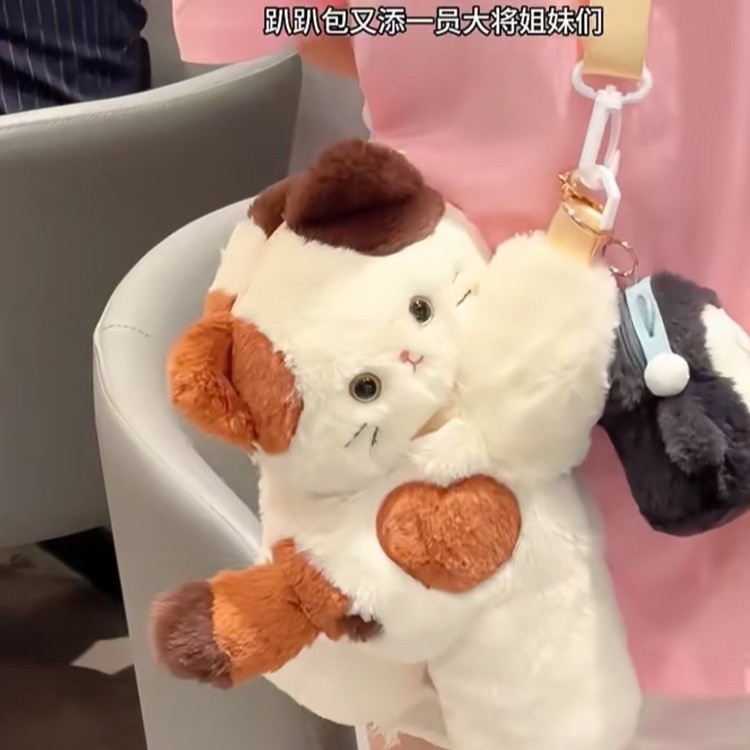 三花小猫趴趴包斜挎包可爱毛绒玩偶百搭时尚背包包女生日礼物女生